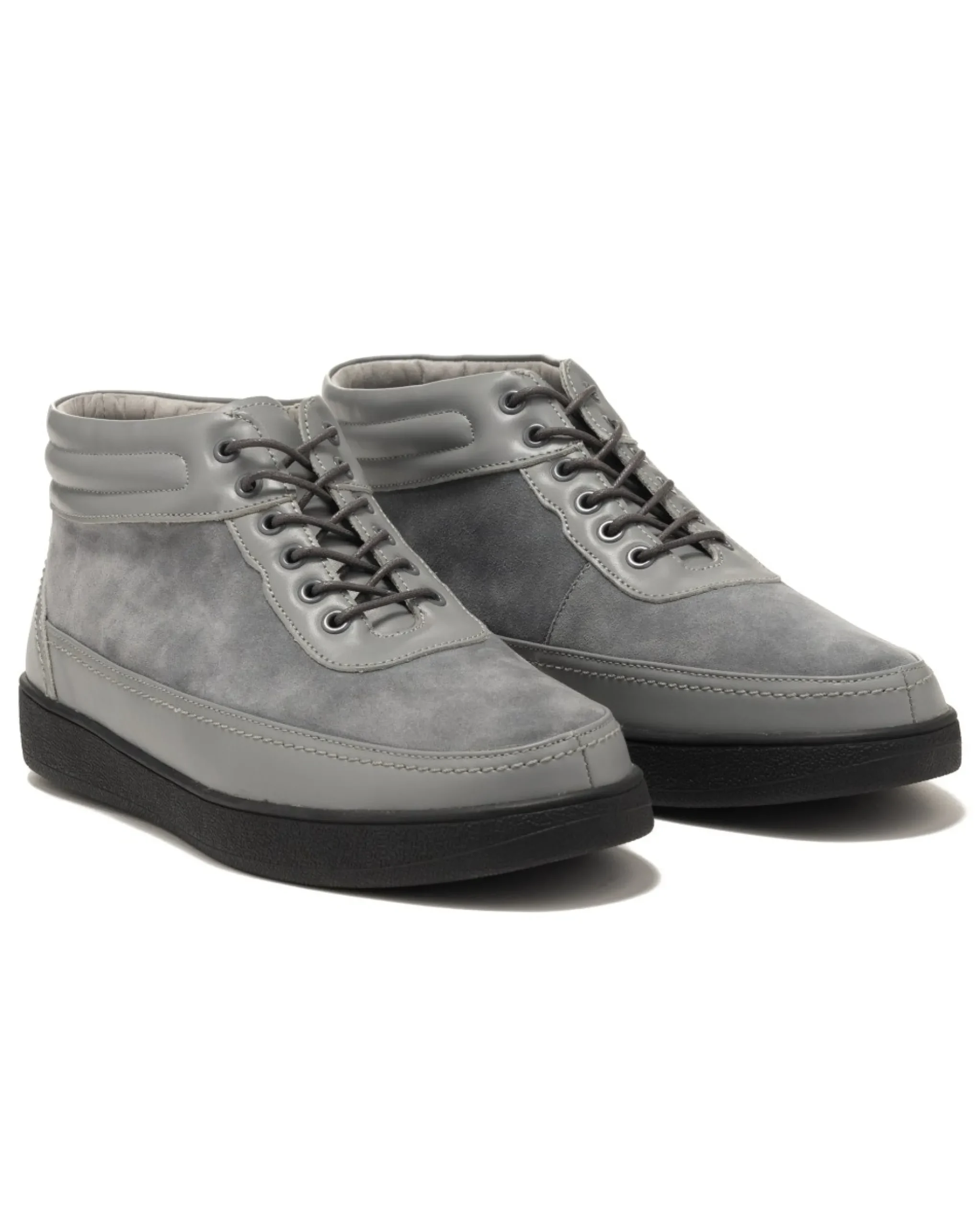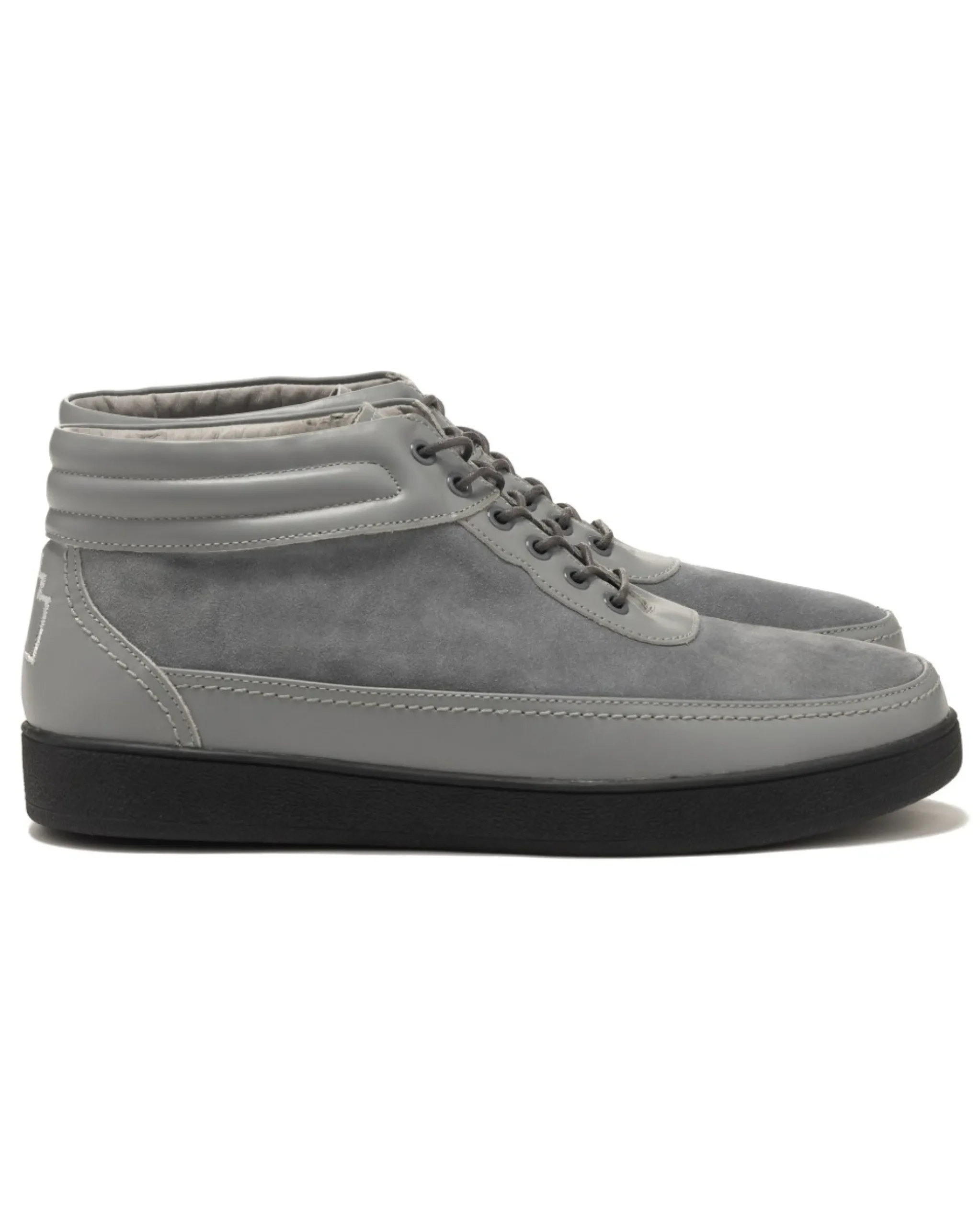 A Mid Height Shoe Crafted From A Nubuck And Cowhide Uppers With A Padded Collar. The Minimalist Shoe Features A Rubber Outsole, Embroidered Branding On The Heel, And Waxed Woven Laces.