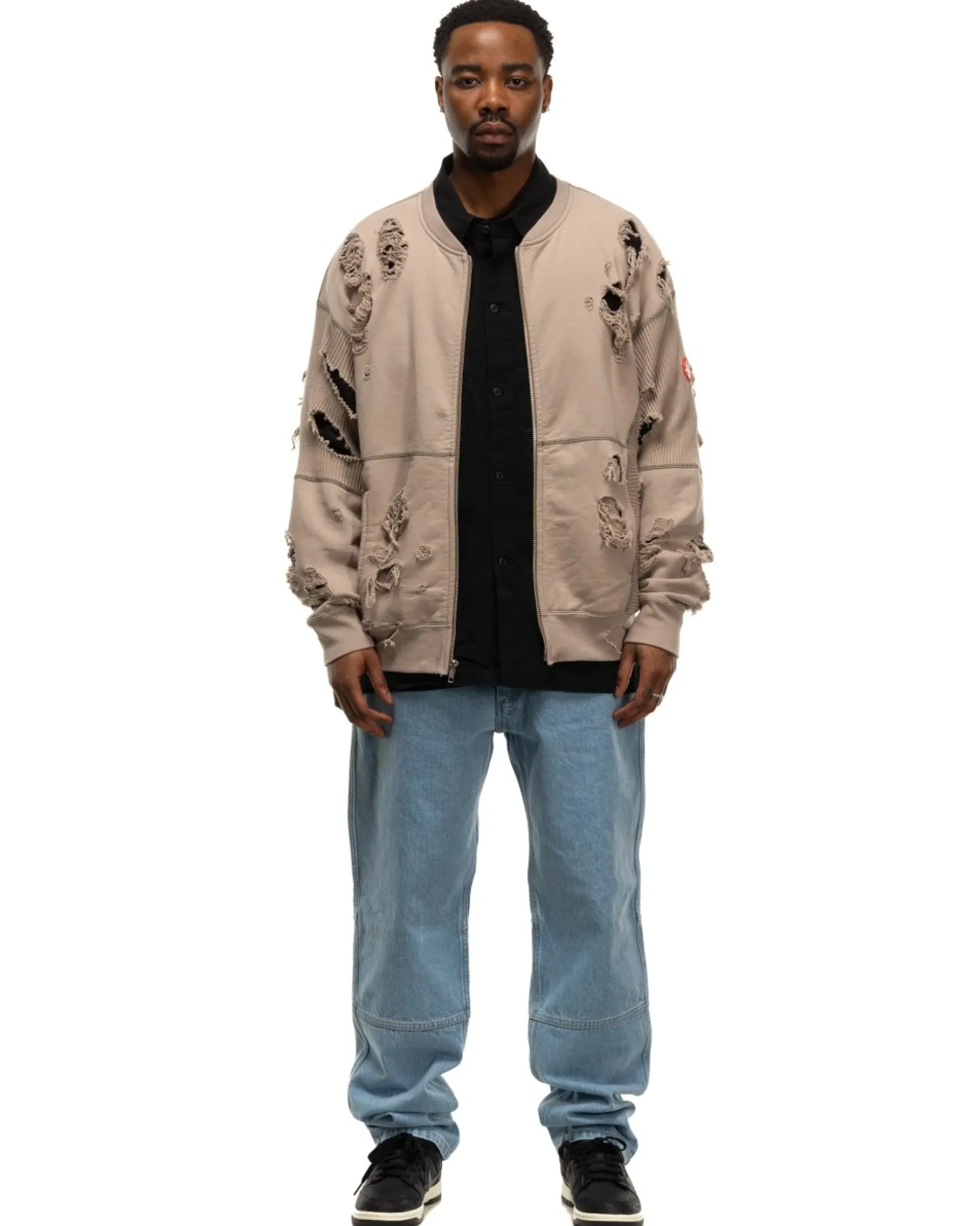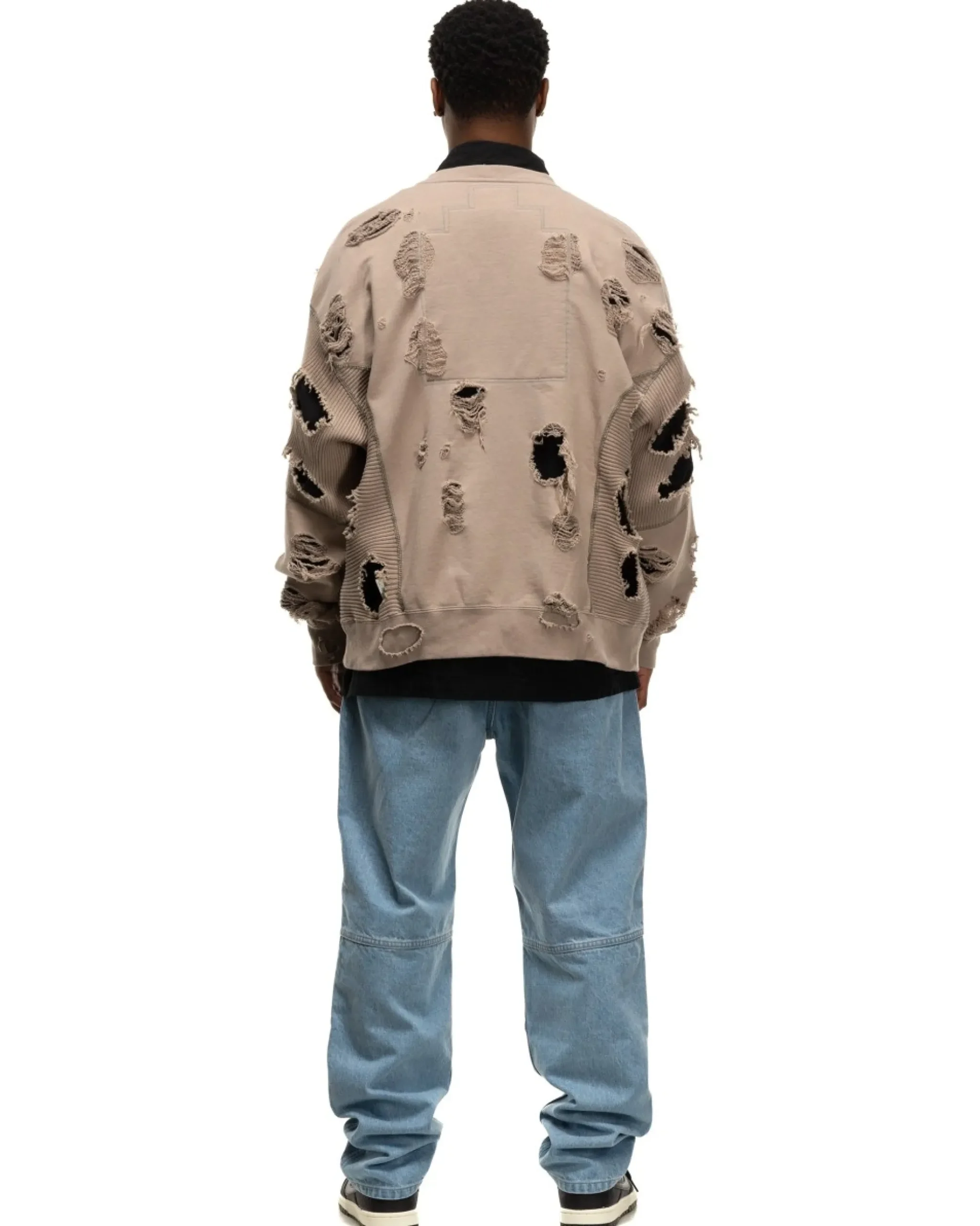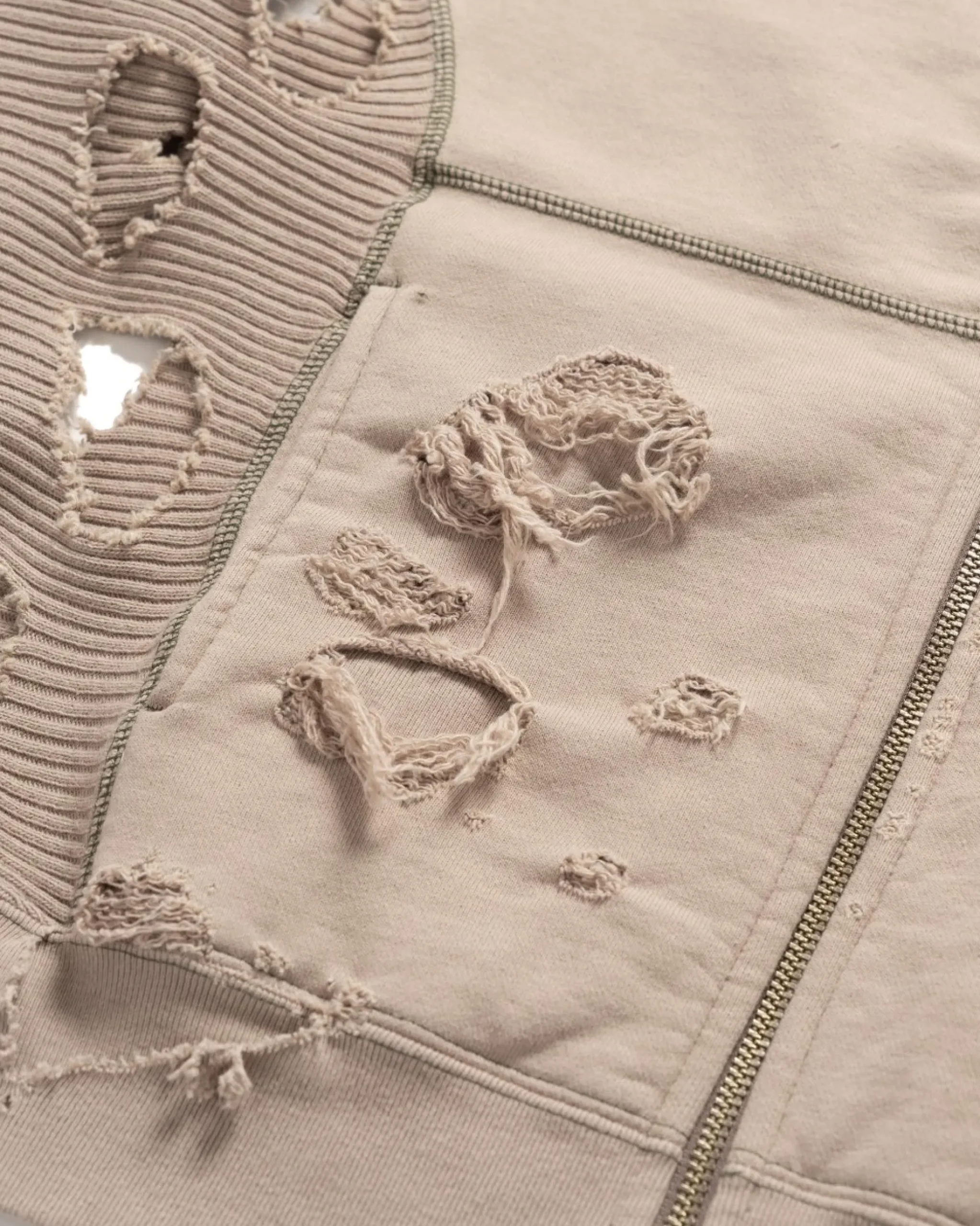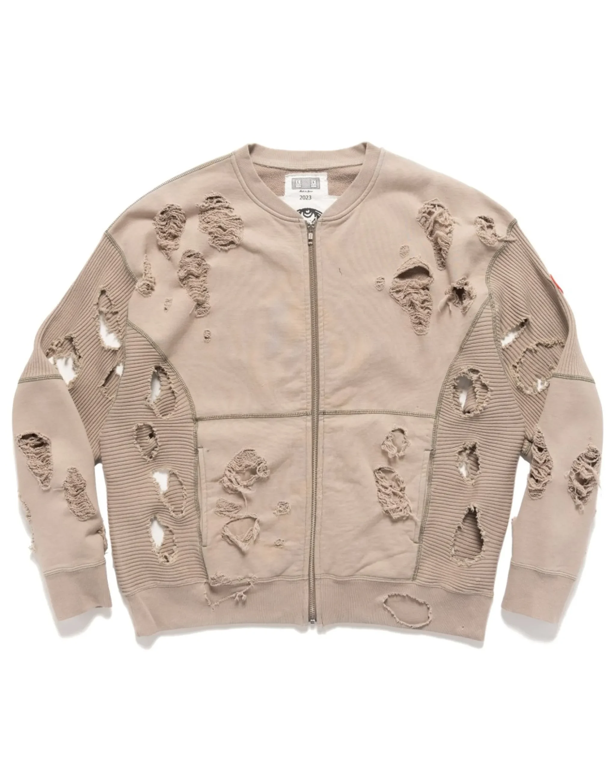 Oversized Zip-Up Crewneck Sweater In 100% Cotton. Cav Empt Revives Their Previously Utilized “Plague” Treatment With Maximal Distressing Present Throughout The Piece Highlighting The Different Weaves Of Fabric Present In The Garment. Finished With A Front Zip And Ribbed Side & Sleeve Panels. Made In Japan.