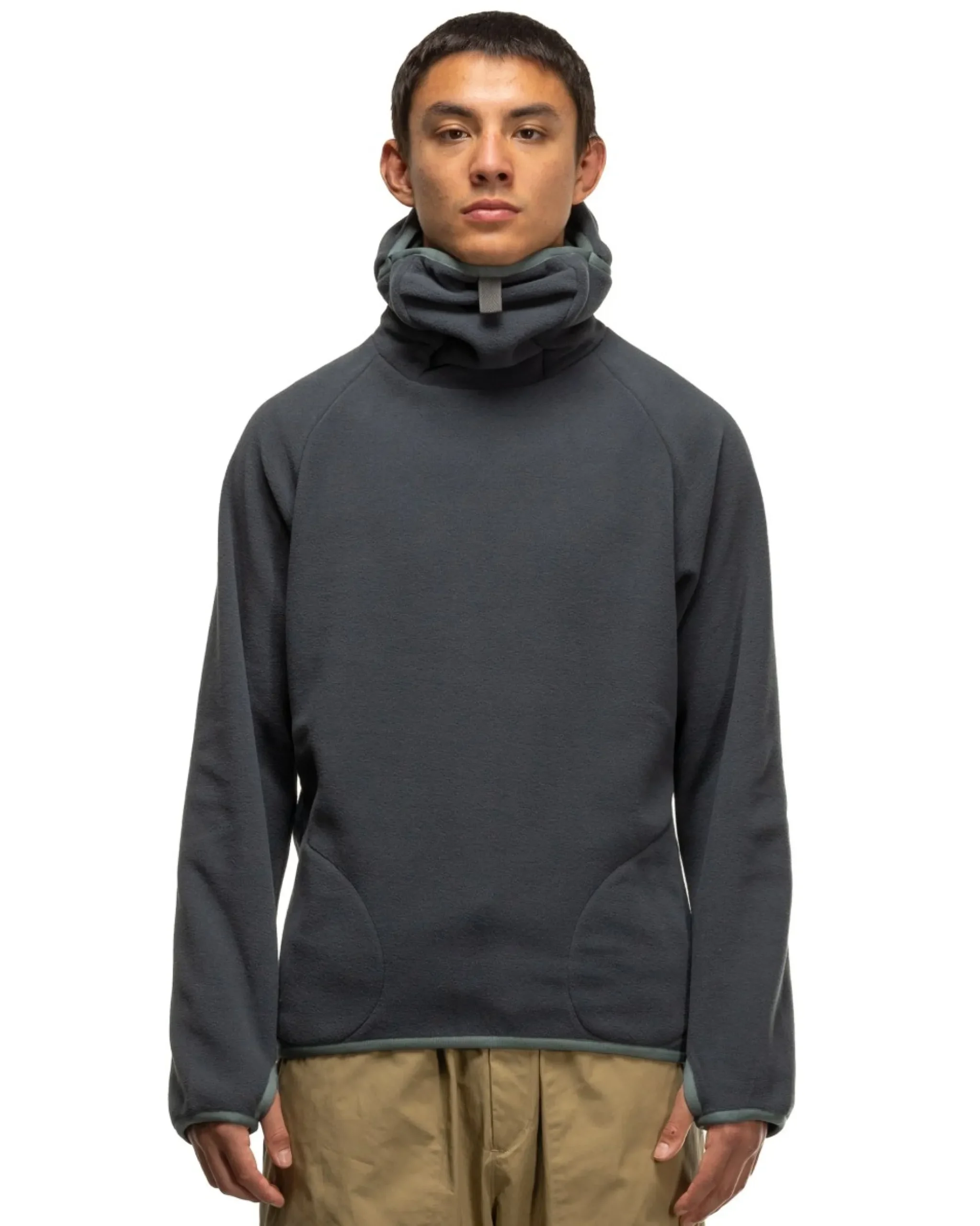 A Classic Ccp Style, This Hooded Sweater Is Crafted From A Lightweight But Warm Technical Fleece And Features A Raglan Cut. The Hoods Constructed Allows The Close Fitting Hood To Be Worn Alone Or With The Facemask Drawn For Full Weather Protection. The Rear Hem Is Slightly Scooped And Is Elasticized Along With The Cuffs And Hood Opening. Made In Japan.