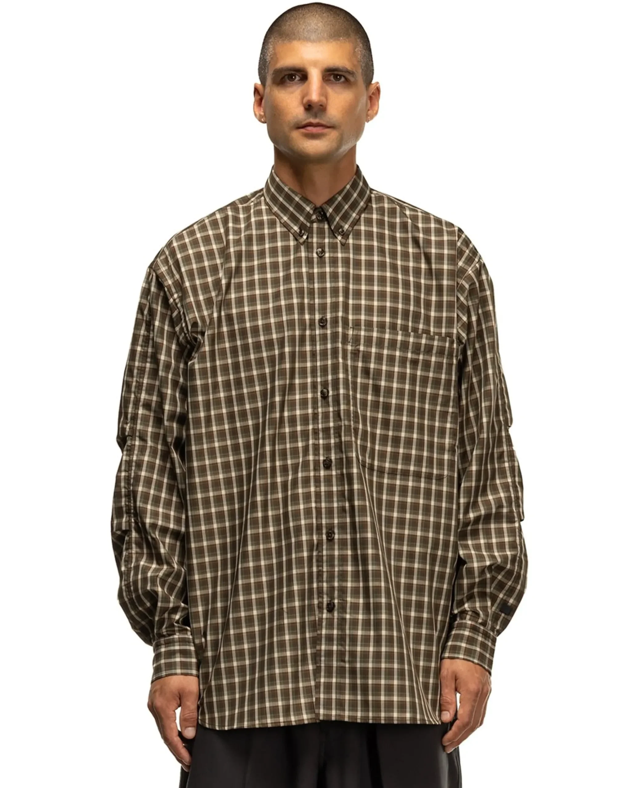 A Refreshed Version Of A Familiar Plaid Shirt Constructed From A Smooth And Densly Woven Polyester Yarn That Provides A Crisp Feel And Wrinkle Resistance. Pleats Are Found Throughout The Garment, Giving It A Unique Volume And Drape That Feels Sophisticated, Yet Casual. Features A Chest Pocket, With A Seconday Inner Secure Storage Pocket, Hanger Loop Behind The Collar, And Branded Details Throughout. A Perfect Shirt To Wear During The Transitional Period Between Seasons.