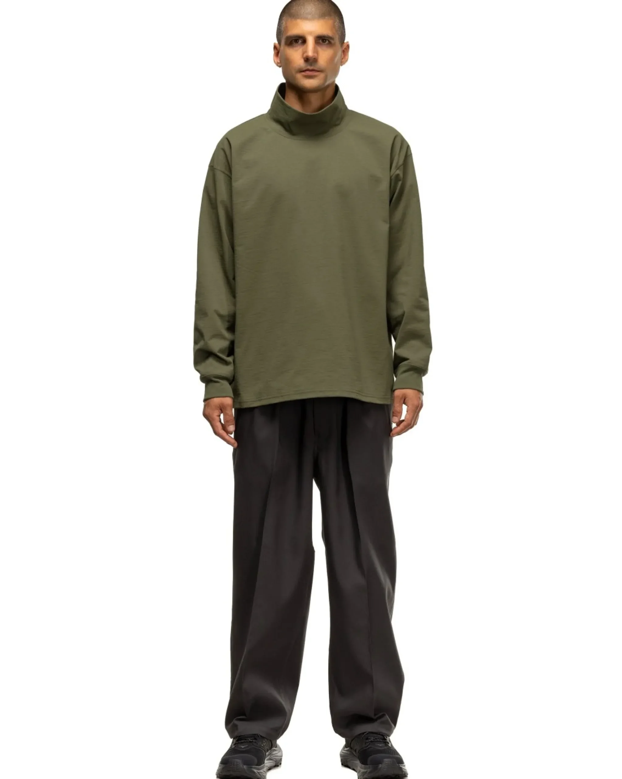 A Hefty Longsleeve Turtleneck Ideal For Layering In The Colder Seasons Ahead. Instantly Noticeable At Touch Is The Firm And Dry Nature Of The Polyester Spun Fabric Which Is Also Comfortable Next To Skin And Carries A Bit Of Stretch. A Wide And Loose Fit Makes It Perfect To Pair As A Base Piece With Other Relaxed Garments From Daiwa.