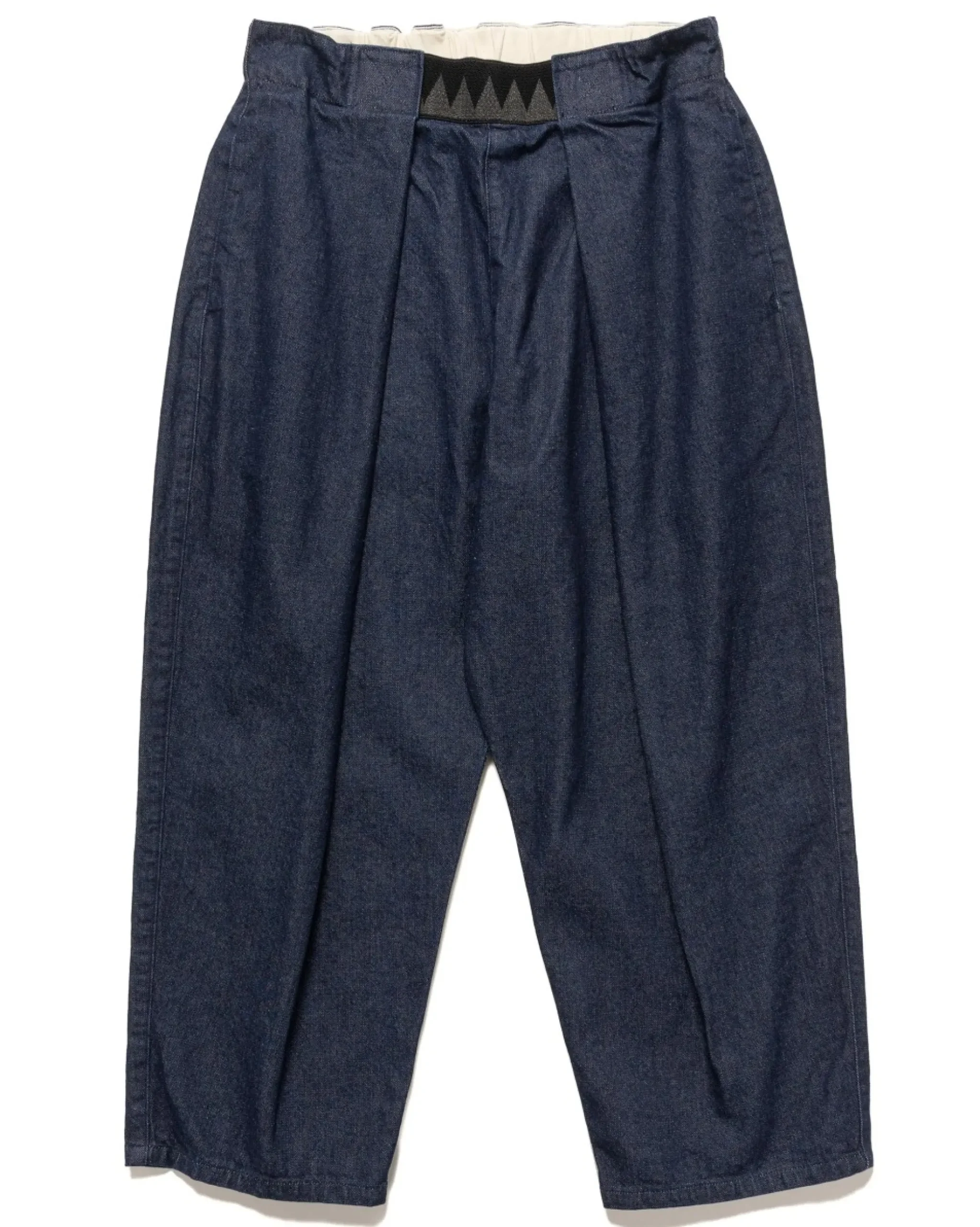 Unique Easy Pants Made In A Lightweight Cotton 12Oz Broken Twill Denim. An Elasticated Band At The Waist Creates A Comfortable Fit And Velcro Tabs Offer A Customized Fit. Features Side Seam Hand Pockets And Patch Seat Pockets. Finished With A Detachable Velcro Tab With Key-Ring At The Rear. Made In Japan.