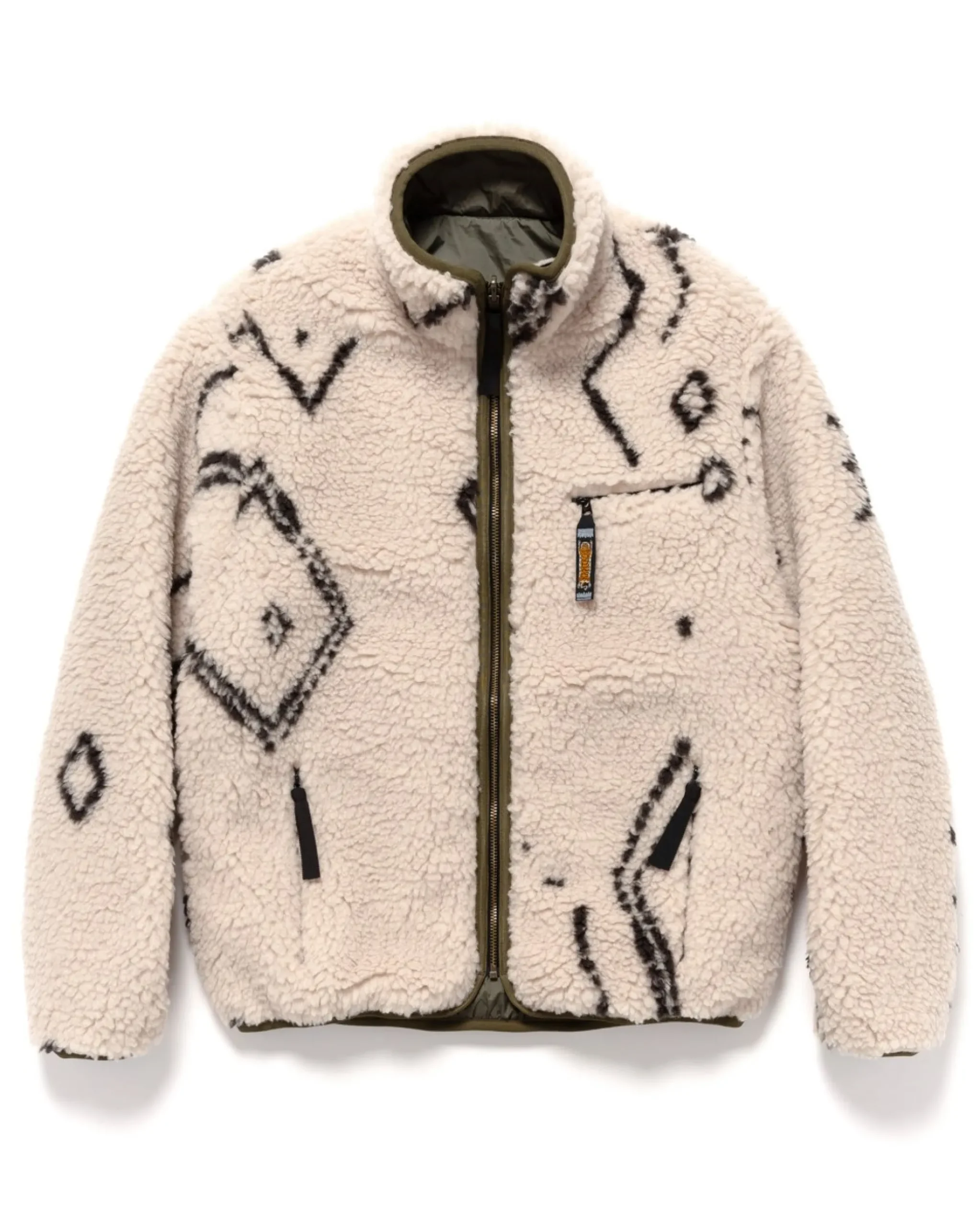 This 2-In-1 Jacket Features A Reversible Design With One Side In A Soft, High Pile Polyester Fleece With Beni Ourain Pattern Print Throughout And The Other In A Smooth And Lightweight Nylon Twill. The Fleece Side Features Zip Hand Pockets And A Horizontal Zip Chest Pocket With Fabric Pull And A Large Zip Back Pocket. The Reverse Features A Snap Button Placket And Inset Zip Hand Pockets. Made In Japan.
