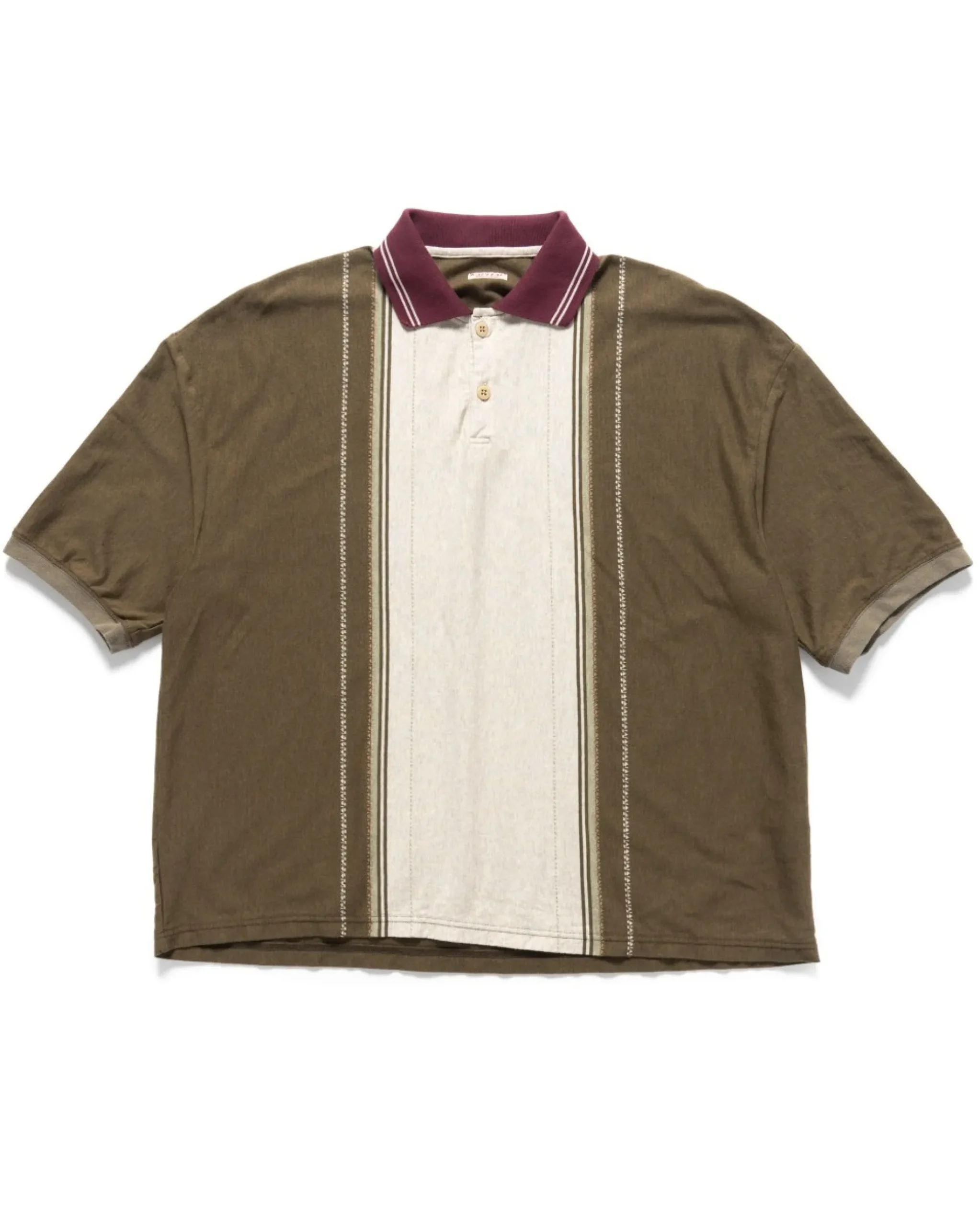 A Polo Shirt Crafted From A Light Jacquard Cotton Sheeting With A Patterned Stripe Design. Crafted With A Loose, Boxy Silhouette For A Relaxed Feel And Featuring A Tipped Collar And Ribbed Cuff. Made In Japan.