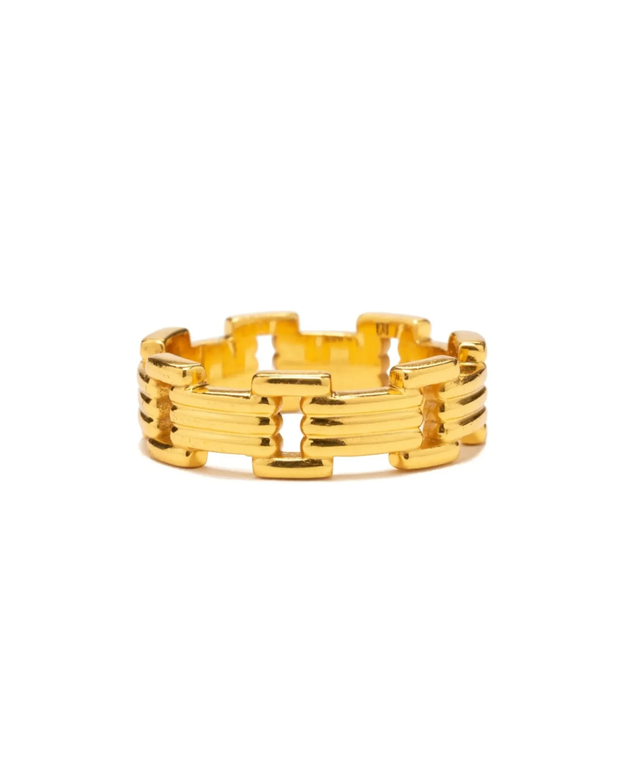 The Lui Link Ring Features A Simple And Elegant Square Link Pattern. Silver 925 Base With 14K Gold Plating, Maple Logo And Hallmarking Engraved Inside.