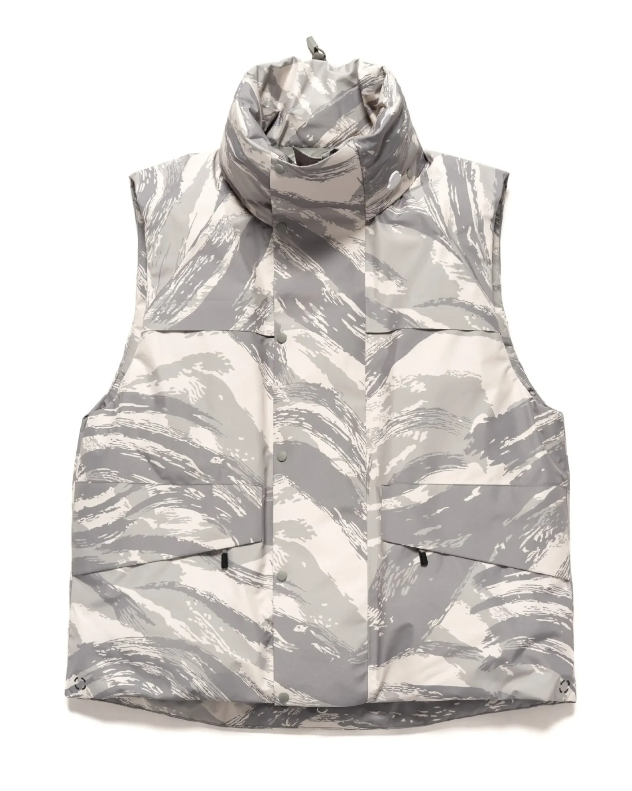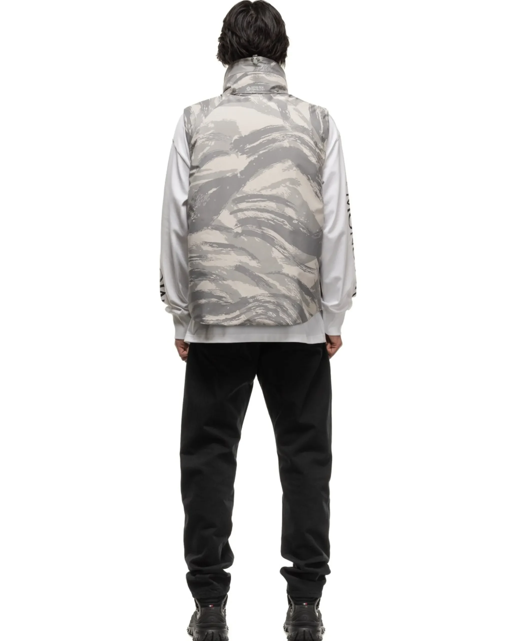 The Vanil Vest Is Constructed From A Windproof 2L Gore-Tex Infinium ™ Fabric That Features An All Over Print. A Two-Way Ykk® Aquaguard® Zipper Front With A Snap Button Placket Cover. Premium Down Filled With A Packable Hood In The Stand Collar And Two Hand Pockets At The Front. Finished With A Silicone Logo Patch On The Collar And Printed Branding On The Back.