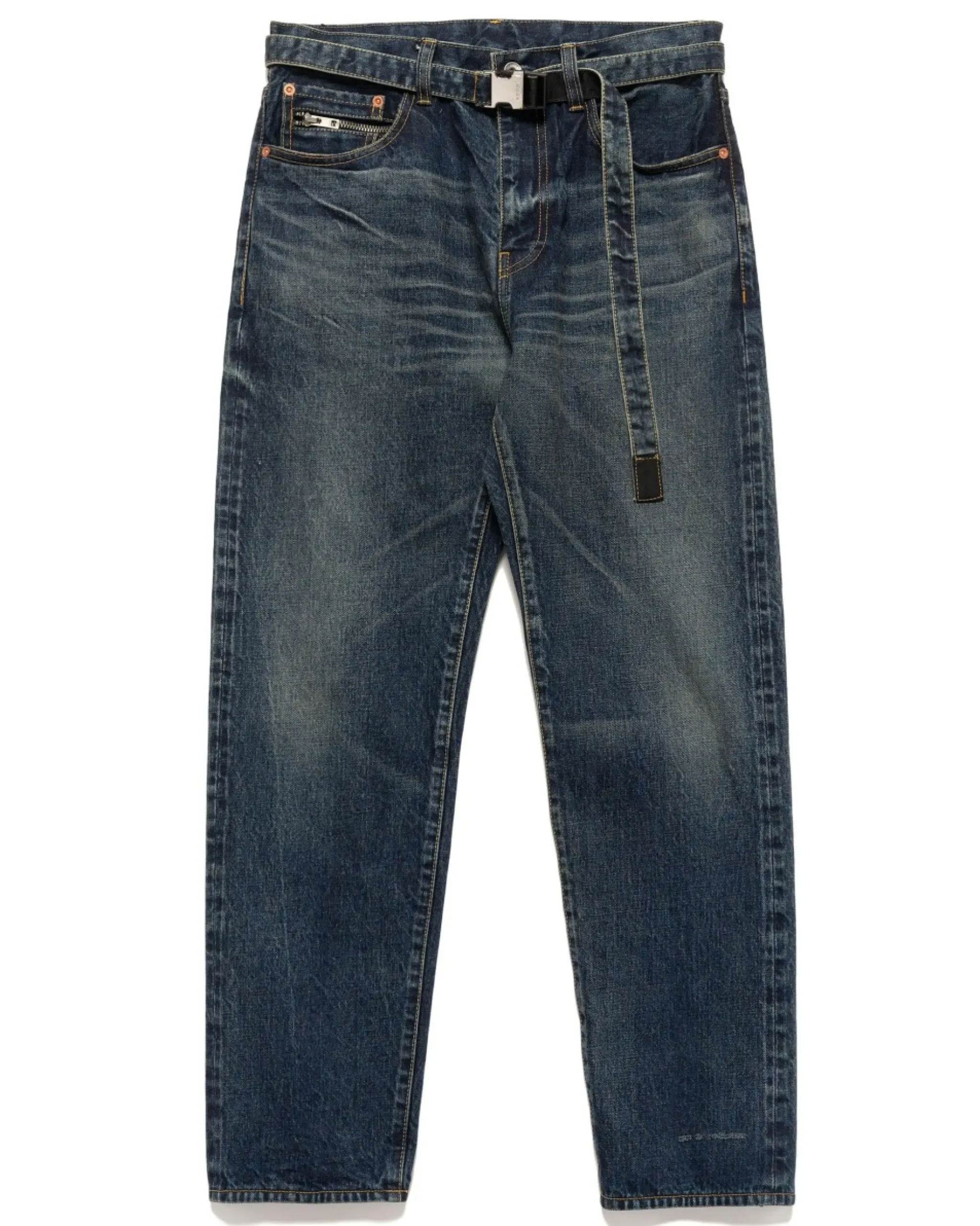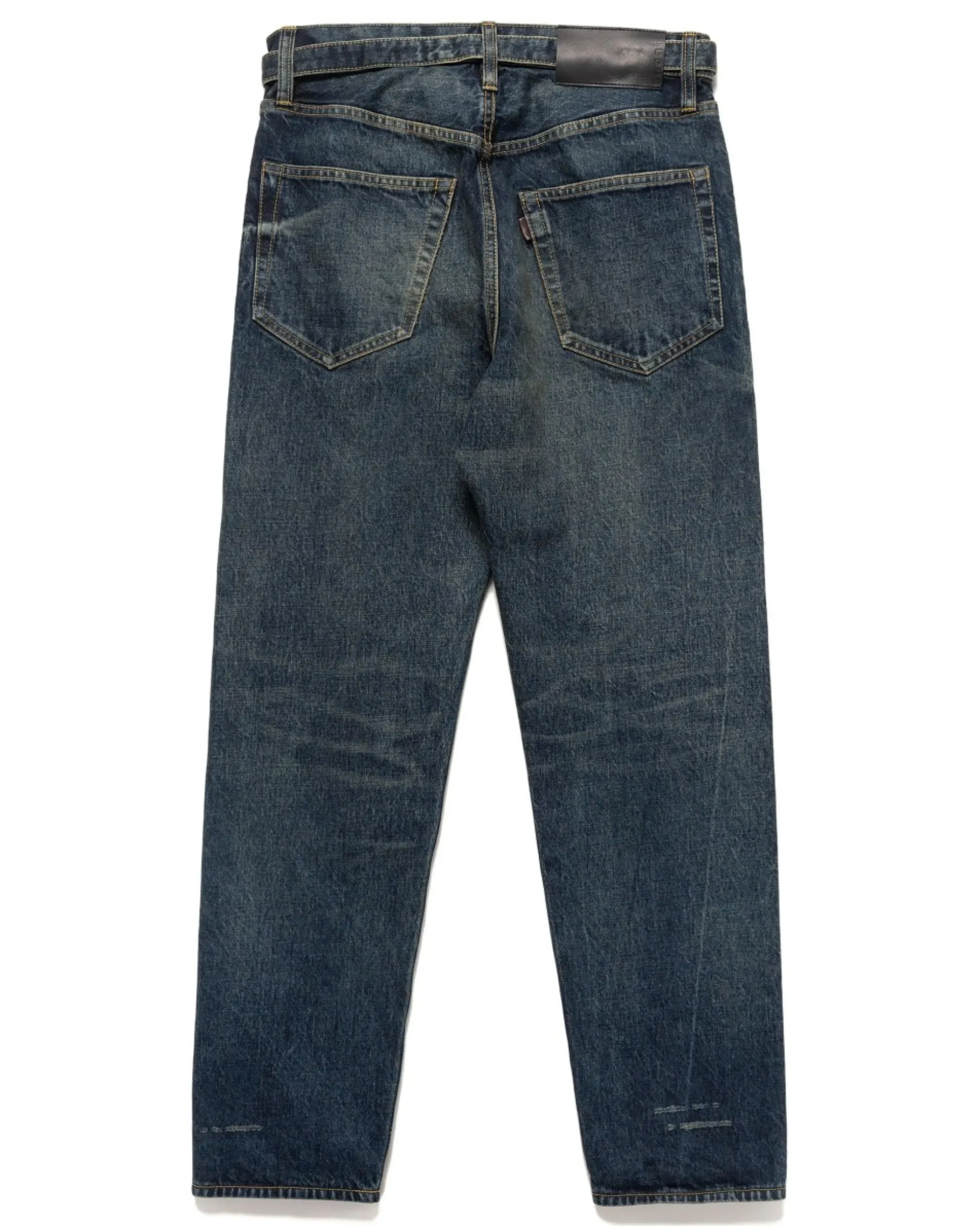 A Contemporary Pair Of Slightly Tapered Denim Pants Made In Collaboration With Beyondexx, A Notable Manufacturer Of Denim Fabric And Goods With A Cult Following. Not Straying Too Far, The Jeans Feature An Exceptionally Well Worn And Washed Look With Realistic Whiskering And Fading In Full Effect. Finished With Signature Details Such As A Self-Fabric Belt With Metal Clasp, Zipper Pocket, And Black Leather Patch. Made In Japan.