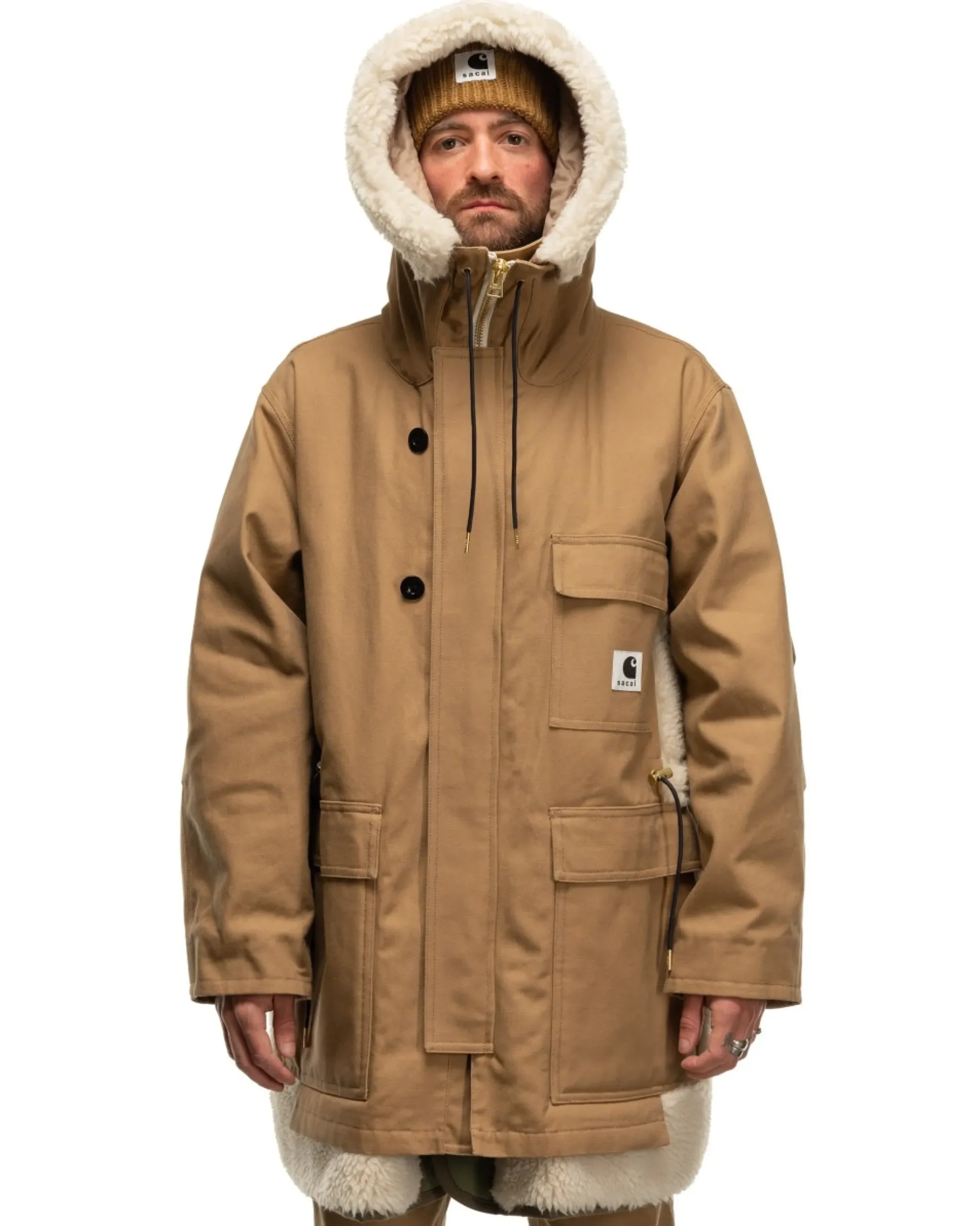 A One-Of-A-Kind Outerwear Piece Superbly Blending Carhartt’S Workwear Ethos With The Refined Execution Of Sacai. The End Result Is A Rugged Winter Ready Coat With A Slew Of Unforgettable Details Such As Numerous Parka Style Front Pockets With Sherpa Fleece Panelling That Ensures Optimal Function And Warmth, Creating A Bold Appearance That Balances Both Workwear And Military References. Constructed From A Canvas Cotton That Is Naturally Weather Resistant And Finished With A Dual Branded Woven Label At The Chest.