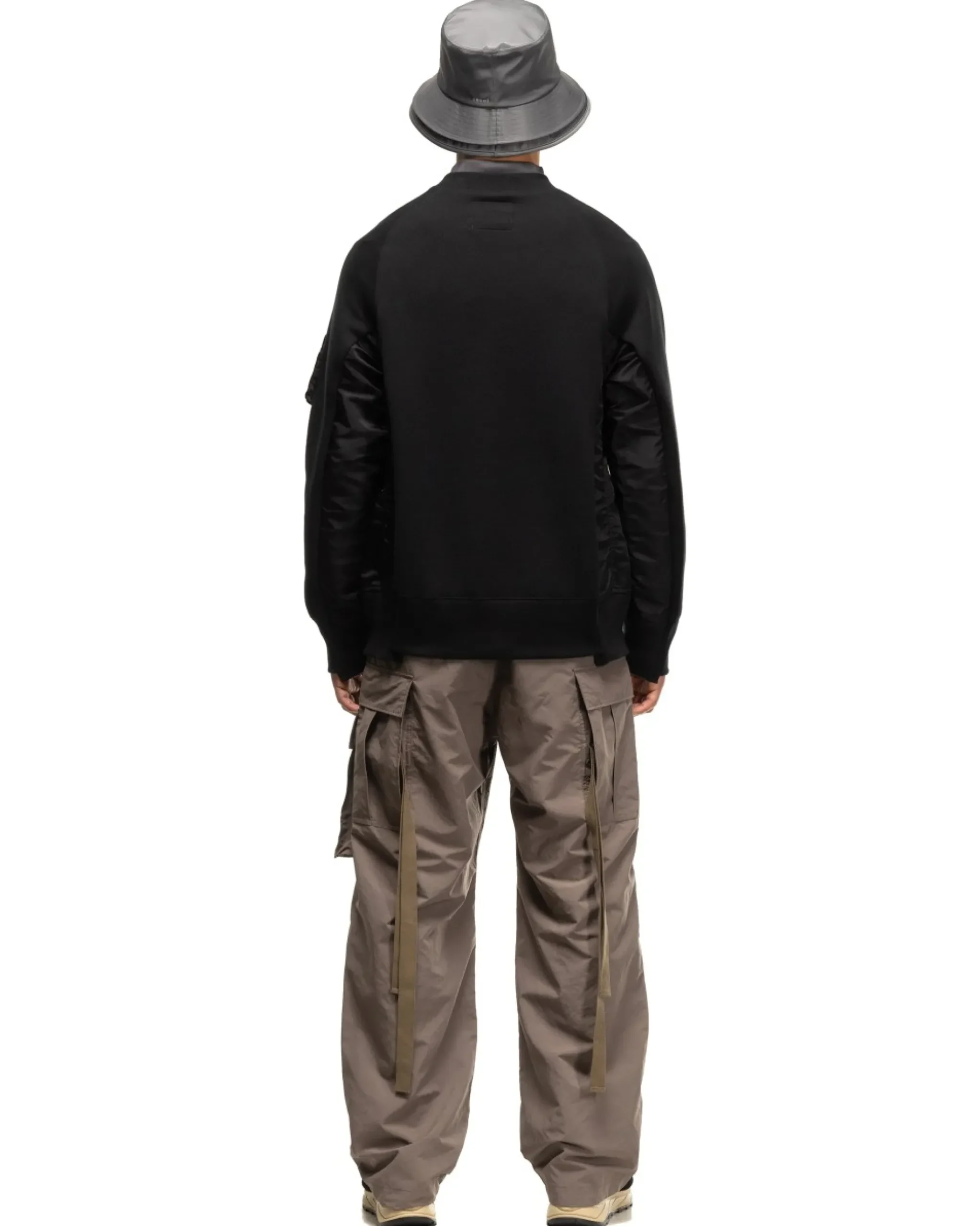 This Crewneck Is Made From A Comfortable And Insulating Cotton And Nylon Sponge Sweat Fabric. Constructed With Ma-1 Inspired Details With Nylon Overlays. Featuring Slanted Hand Pockets, And Zip Sleeve Pocket Are Crafted In Nylon Twill. The Sweater Is Finished With Ribbed Cuffs, Collar And Hem. Made In Japan.