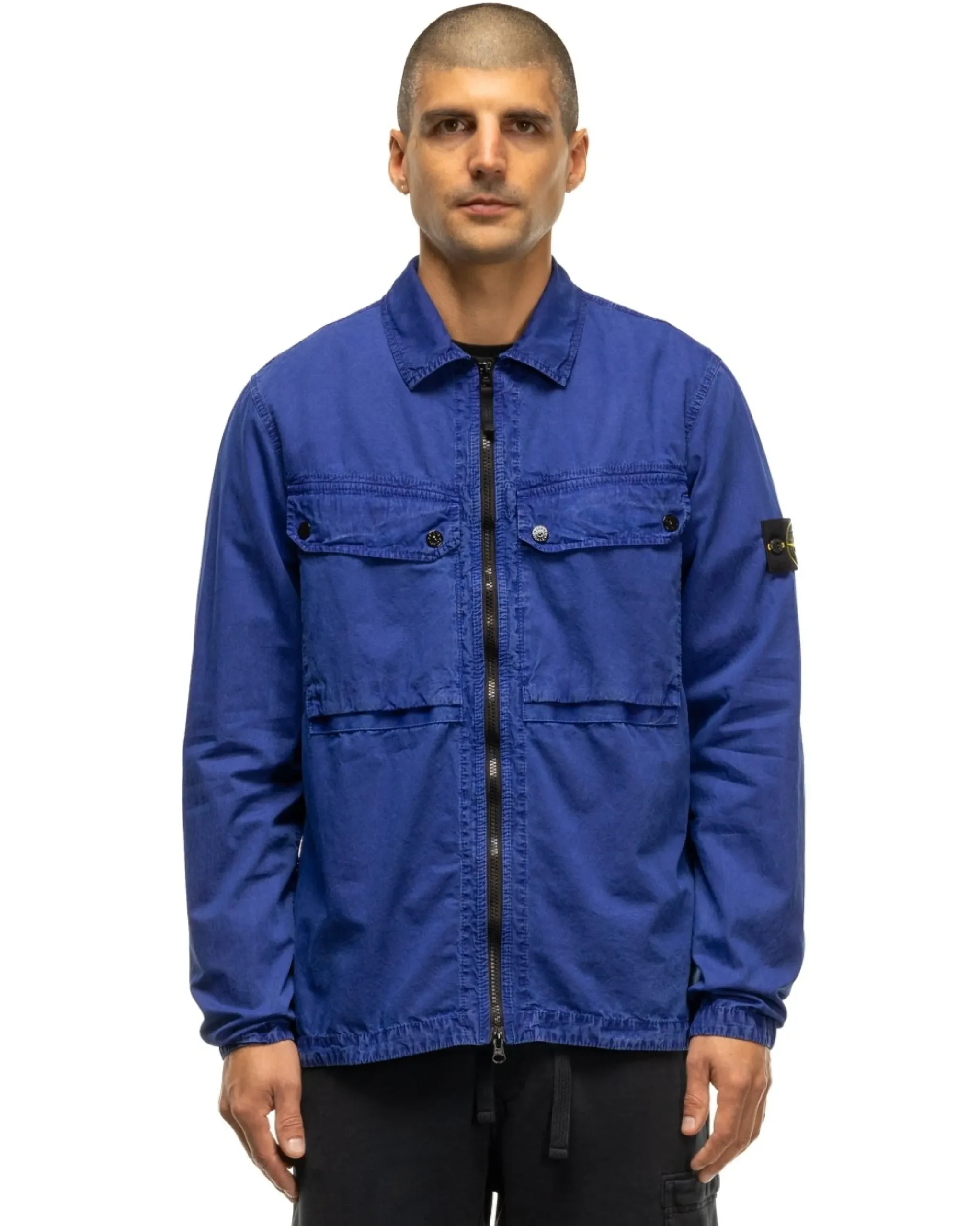 Stone Island Brushed Cotton Canvas Old Effect Overshirt Bright Blue>Men Shirts
