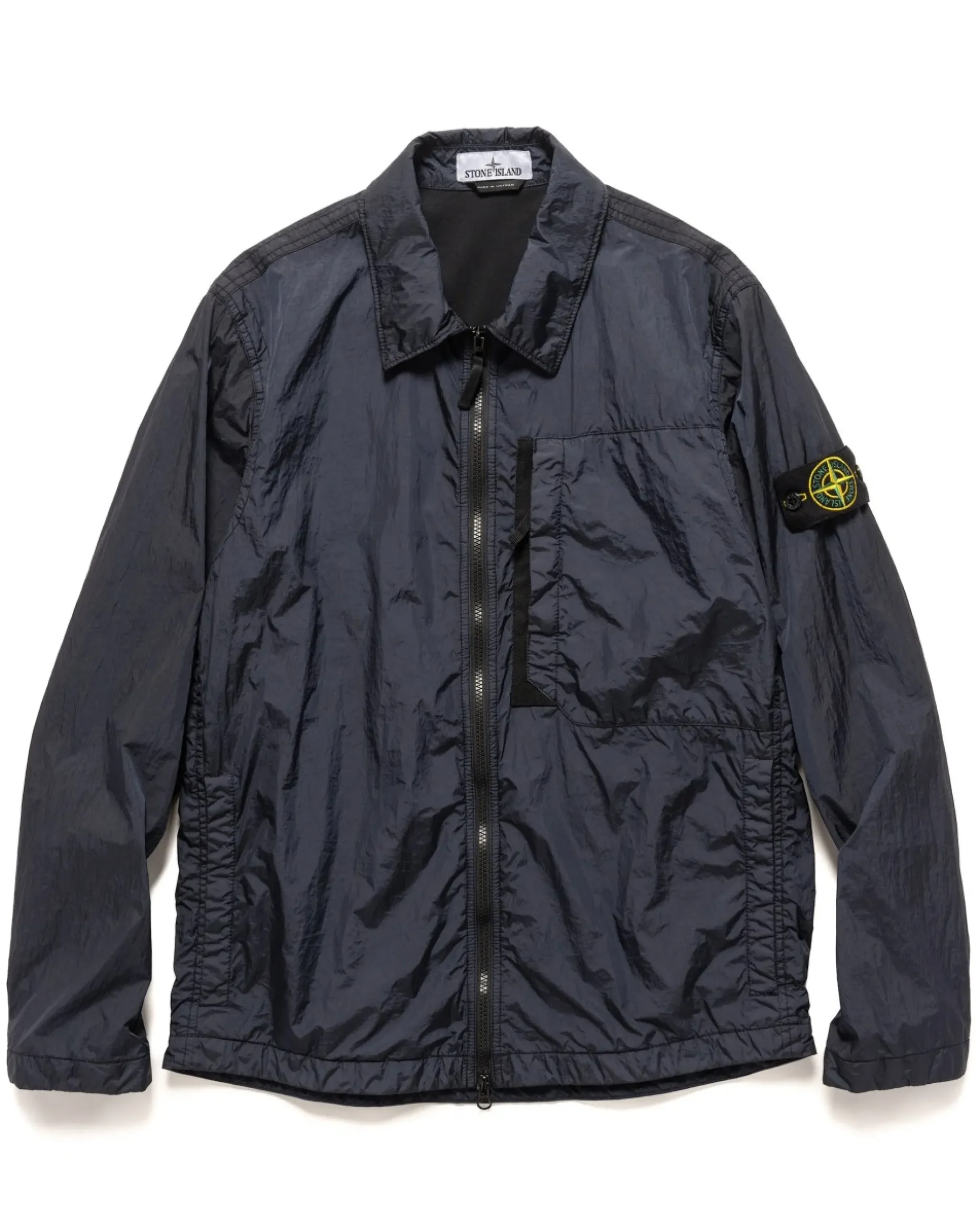 This Classic Overshirt Is Crafted With 100% Recycled, Tightly Woven Nylon With Signature Crinkle Texture And Finished With A Light Resin Coating For Water/Wind Resistance. Seasonally Updated With A Minimal Execution, The Shirt Features A Large Front Chest Pocket With Zip Opening, A Clean Double Zip Front Closure, And Hand Pockets. A Versatile Weather Ready Garment Perfect For A Variety Of Occasions.