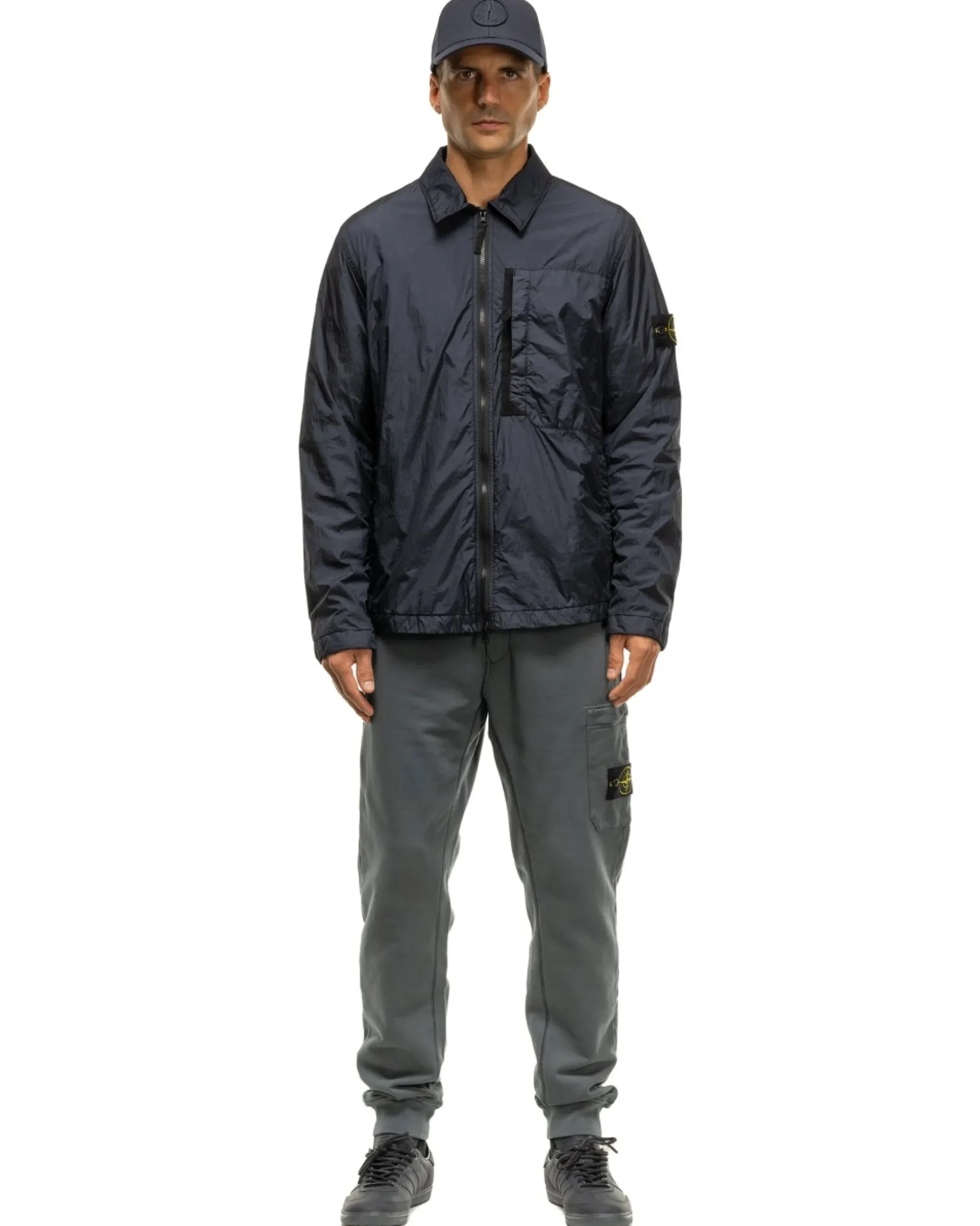 Stone Island Garment Dyed Crinkle Reps Recycled Nylon Overshirt Navy Blue>Men Shirts