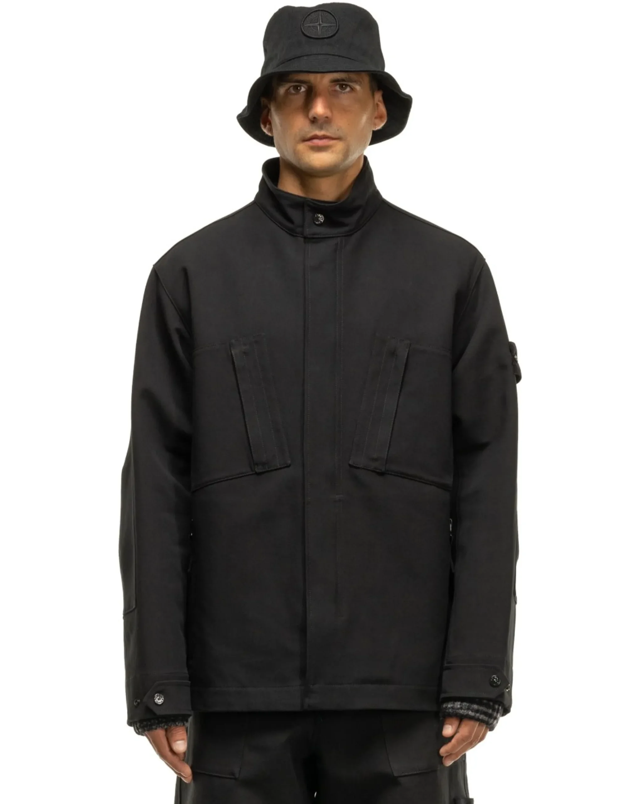 Stone Island Ghost Piece Gabardine Doppio Jacket Black>Men Outerwear