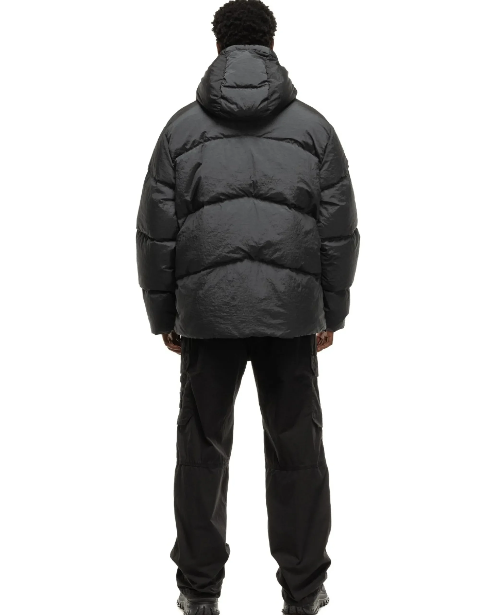 Reversible Hooded Down Jacket Constructed In Nylon Metal, A Material With A Metallic And Iridescent Look When Garment Dyed. The Evolution Of This Iconic Stone Island Fabric Sees The Use Of Econyl® Regenerated Yarns – A Post-Consumer Recycled Material. The Piece Is Padded With The Finest, Responsibly Sourced Feathers, Specifically Treated To Withstand The Garment Dyeing Procedure. Garment Dyed With A Double-Color Recipe, With The Addition Of A Special Pfc-Free Anti-Drop Agent To Provide Additional Protection From The Elements. The Reverse Of The Jacket Is In Light Nylon Canvas.