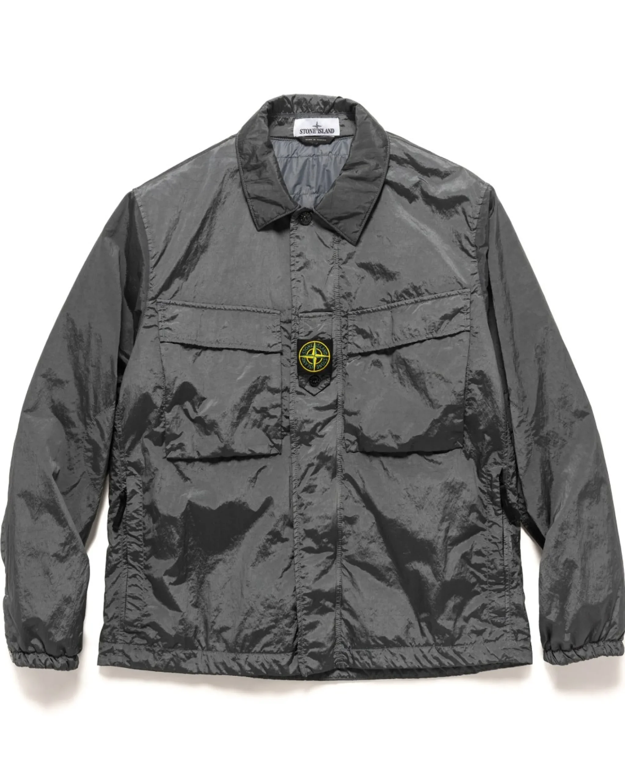 Lightweight Collared Jacket Constructed From Iconic Nylon Metal, A Material With A Metallic And Iridescent Look When Garment Dyed. Features A Stylish And Functional Design Reminiscent Of Classic Coaches Jackets With Two Large Chest Pockets, Hand Pockets, And Cinched Cuff And Hem For A Casual Fit. Finished With A Hidden Two Way Zip Placket And Badge At Chest.