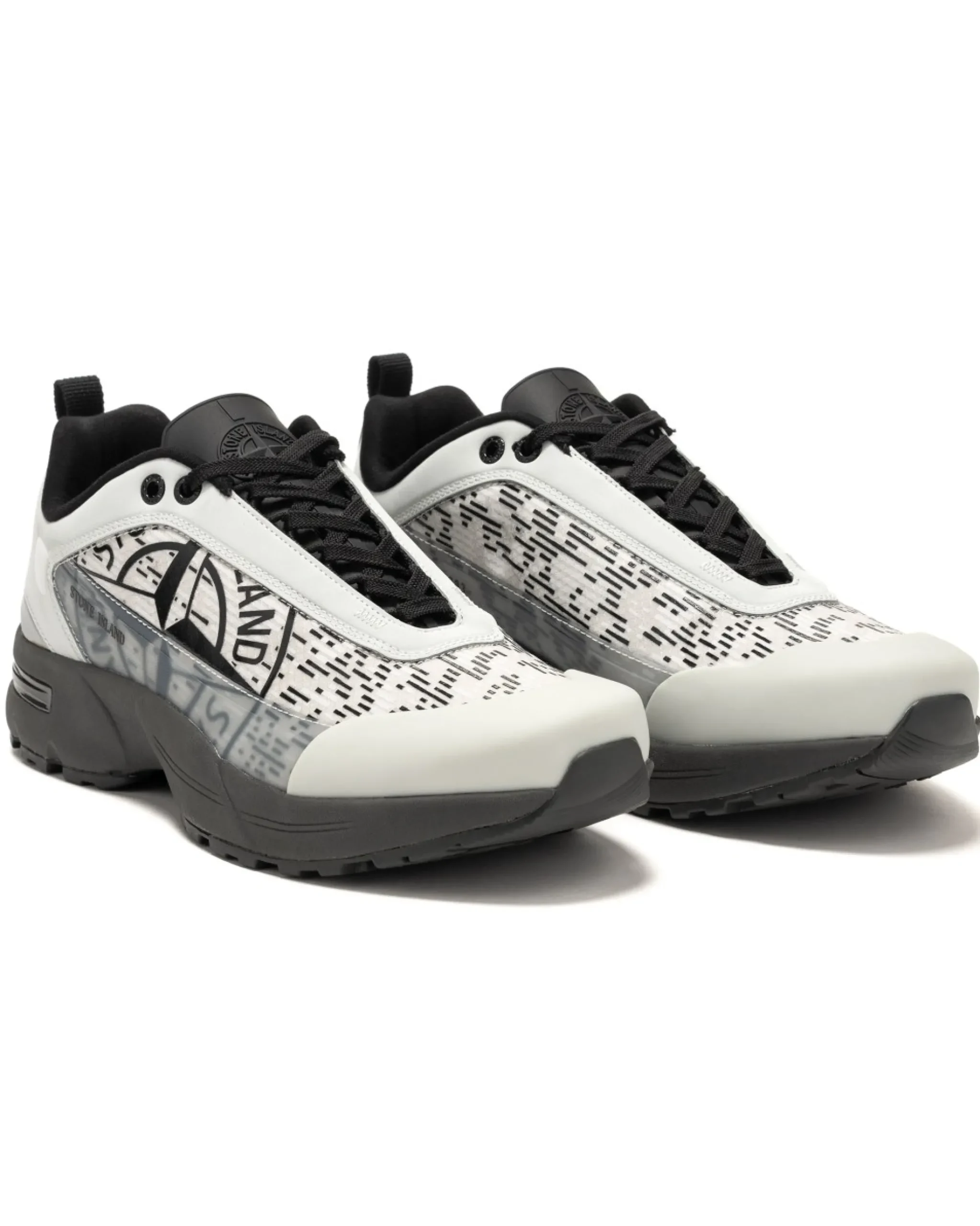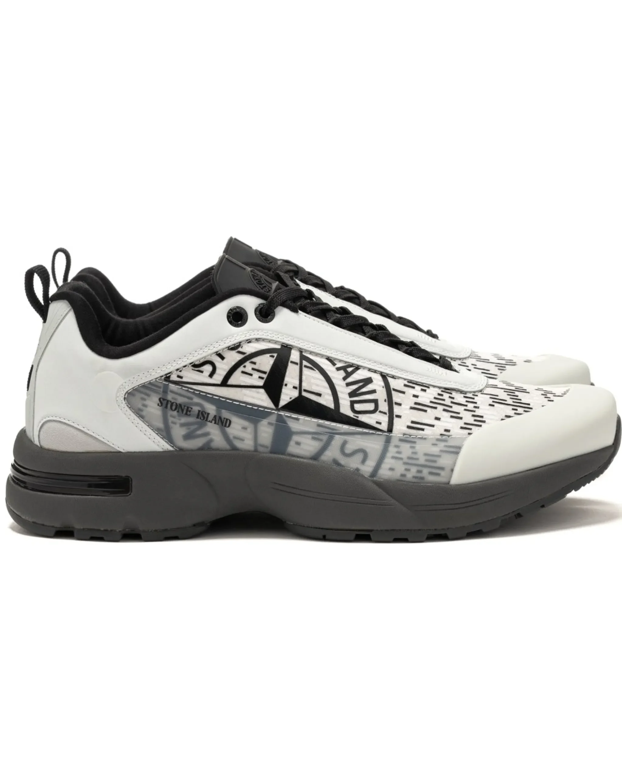 This Sneaker Takes Inspiration From Silhouettes Celebrated By Uk’S Grime Culture. The Premium Manmade Upper Is Combined With Rubberized Leather, A Reinforced Molded Military Toe Cap And A Tactical Articulated Outsole. With Archival Cues, Like The Molded Rubber Tongue And A Ripstop Transparent Monofilament Layer Which Sits Above A Recycled Polyester, The Shoe Represents A Blend Of Cultural References From Stone Island’S History.