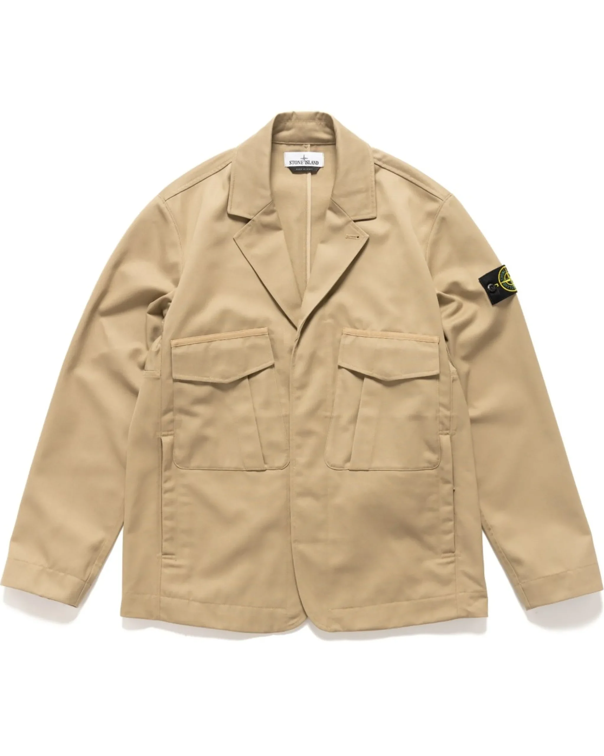 Military Inspired Blazer Constructed From A Durable Gabardine Fabric Originally Designed For Workwear Pieces. The Post-Consumer Polyester Warp, Made From Recycled Plastic Bottles, Is Tightly Woven With Cotton Yarns. It Has Good Resistance To Tearing, Abrasion And Frequent Washing And Has Been Treated With An Anti-Drop Agent.