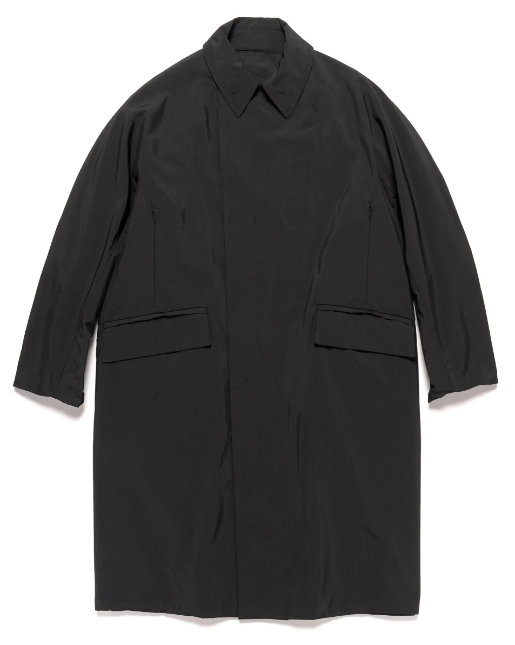 The Dual Point Device Coat Is Constructed From A Komatsu Matere Textile Called Komathermo. Intended To Regulate Body Temperature Through 360 Ventilation, A Thin And Lightweight Material With Thermal Properties. Large Flap Pockets Are Placed On Both Sides Of The Coat, A Tablet Pocket, Wallet Pocket, And A Charger Port With Internal Pocket. Three-Button Closure With Anti Static Properties. Made In Japan.