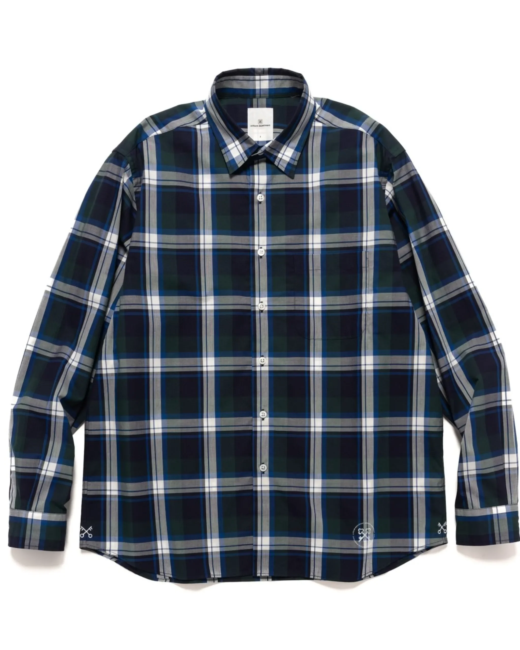 Uniform Experiment Check Yoke Print Regular Collar Shirt Green>Men Shirts