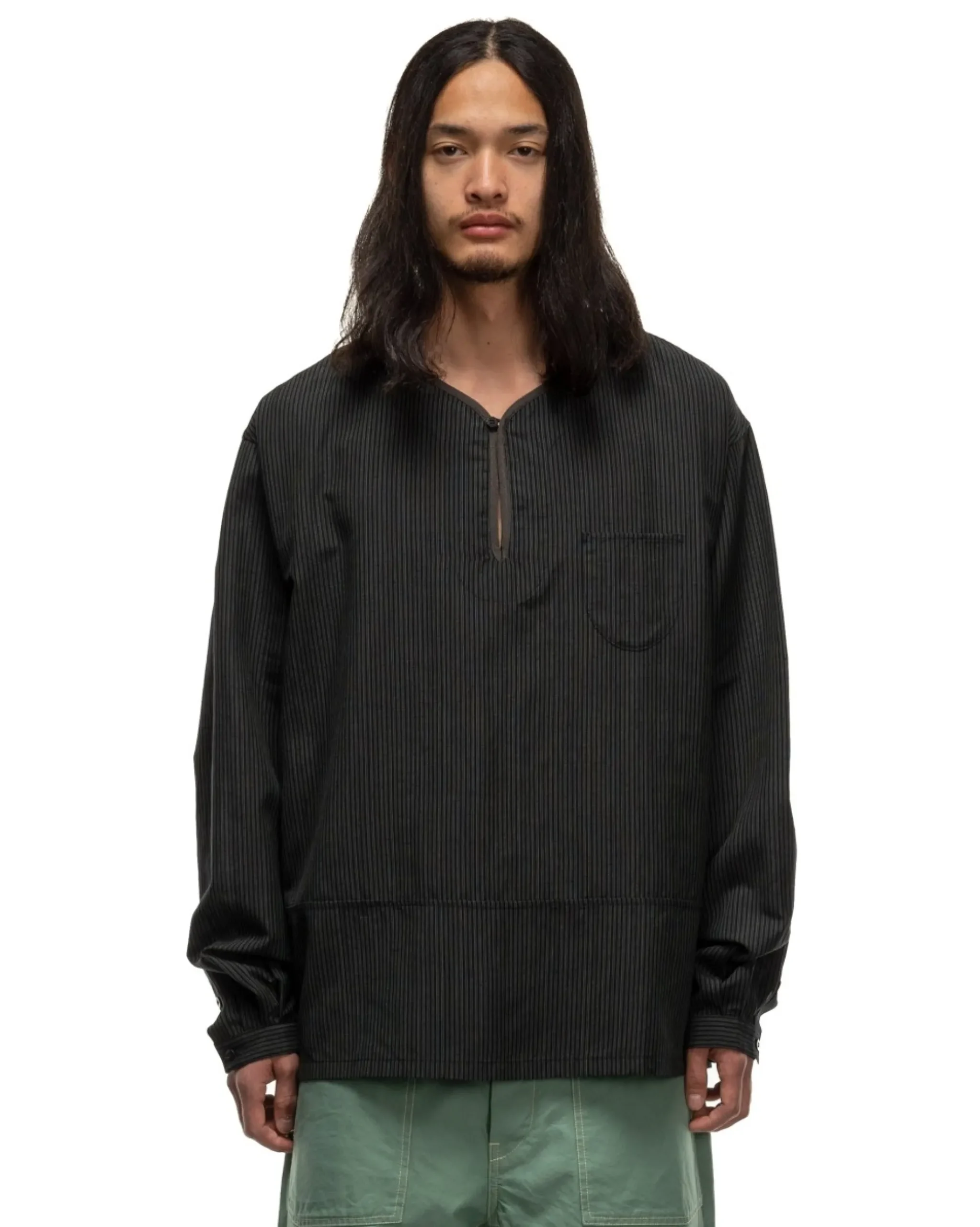 The Tunic Shirt’S Luxurious Striped Fabric Is Made From A Wool And Linen Woven Fabric Blended With Multiple Types Of Thread To Achieve It’S Distinct Finish. Featuring A Panelled Construction, A Single Patch Chest Pocket And Tonal Piping At The Collar. Made In Japan.