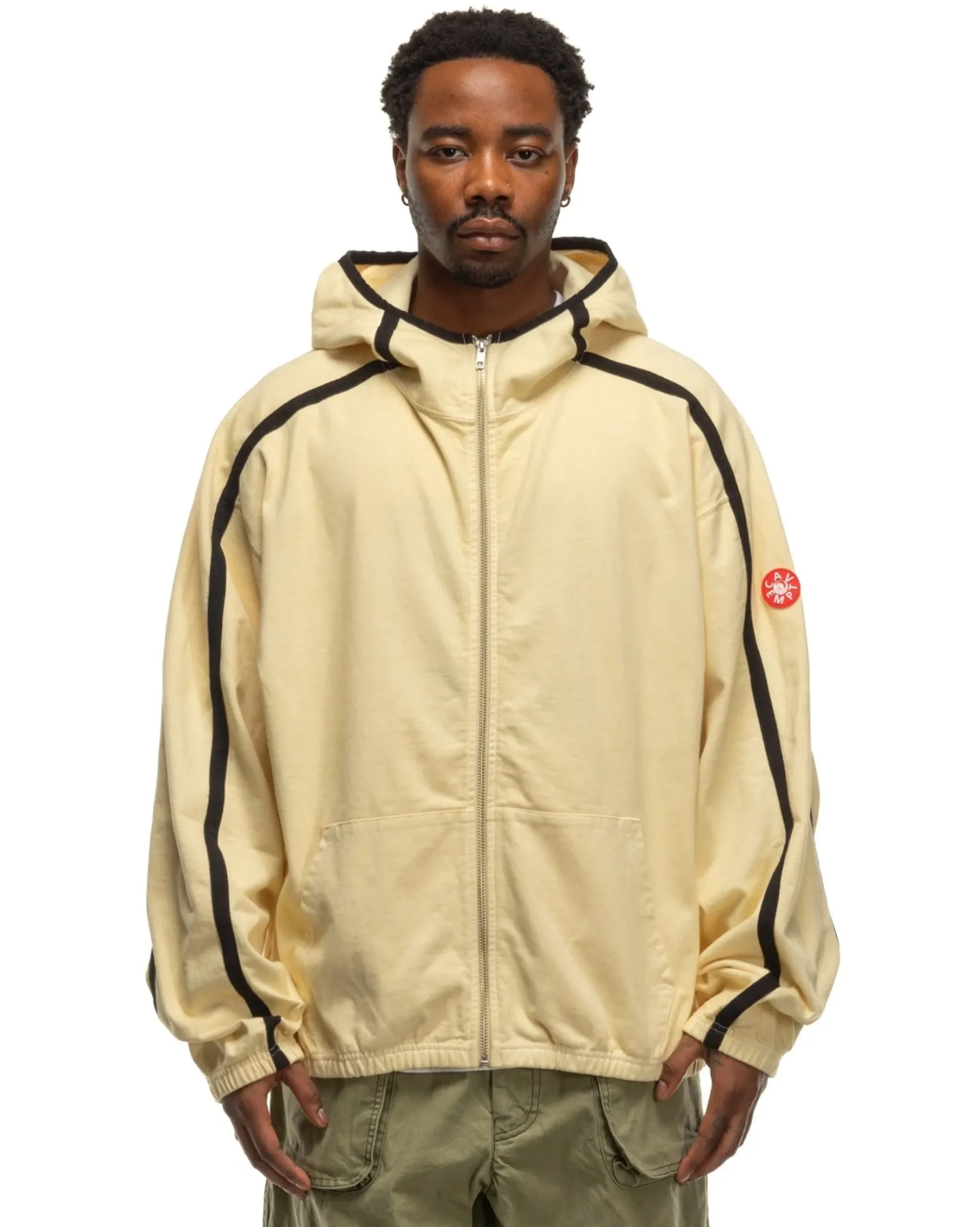 A Classic Zip Up Hoody Constructed From A Thick Cotton Jersey In The Signature Wide Cropped Ce Fit. An Ideal Layering Piece For The Colder Months But A Stand-Out Outer Layer For The Transitional Seasons With Its Subtle Overdye Treatment And Striking Contrast Taping. Featuring The Usual Level Of Detail From Cav Empt With Embroidered Branding On The Shoulders, Interior Ziggurat Patch With Reflective Exterior Print And Their Iconic Rubber Patch On The Sleeve. Made In Japan.