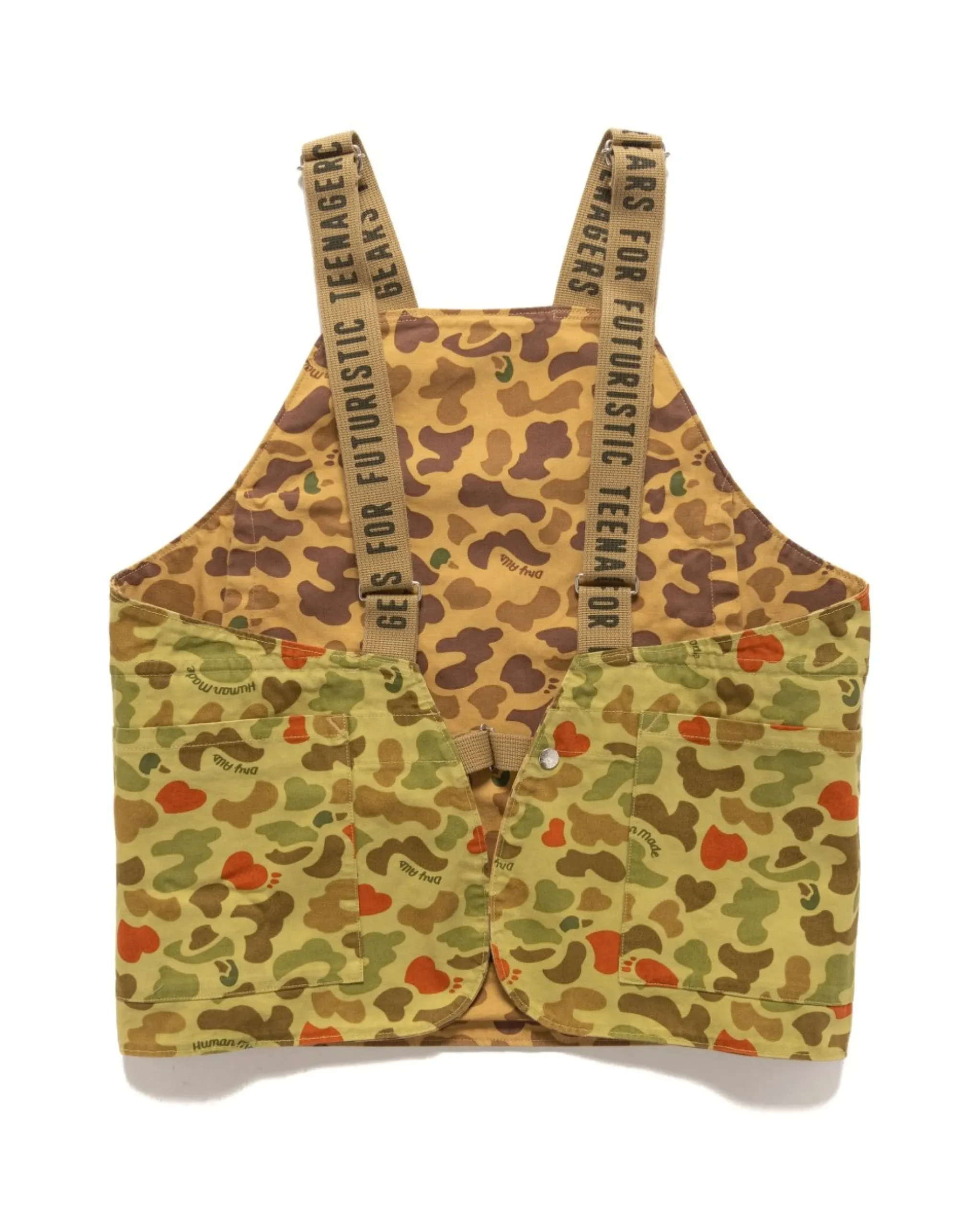 A Traditional Hunting Vest Adorned With A Custom Duck Camouflage Inspired By One Of Human Made’S Iconic Animals. A Stand Out Piece From This Season, Allowing You To Upgrade Your Layering Options With Additional Storage Thanks To The Large Wraparound Pockets At Either Side. The Reversible Construction Provides Versatility For Your Outfits Colour Palette.