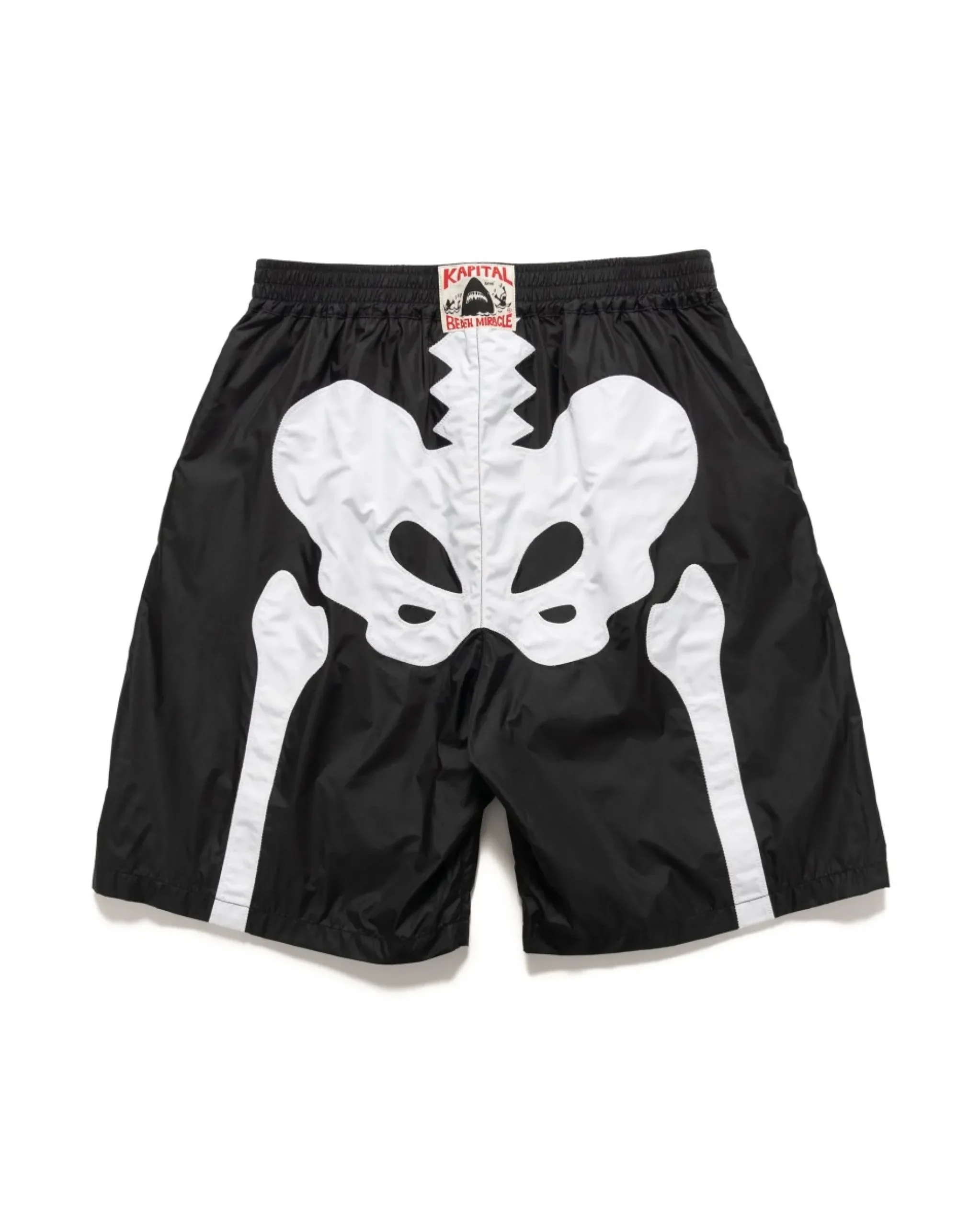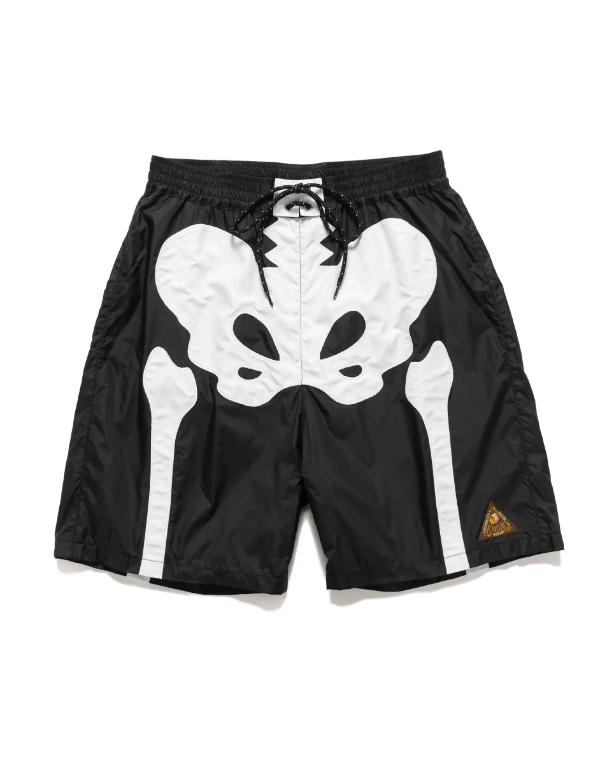 A Classic Pair Of Swim Shorts Imagined Through The Kapital Lens. Crafted From A Premium Nylon Twill And Given Their Signature ‘Bone’ Graphic Detailing At The Front And Back, Making These A Statement Summer Piece. Made In Japan.