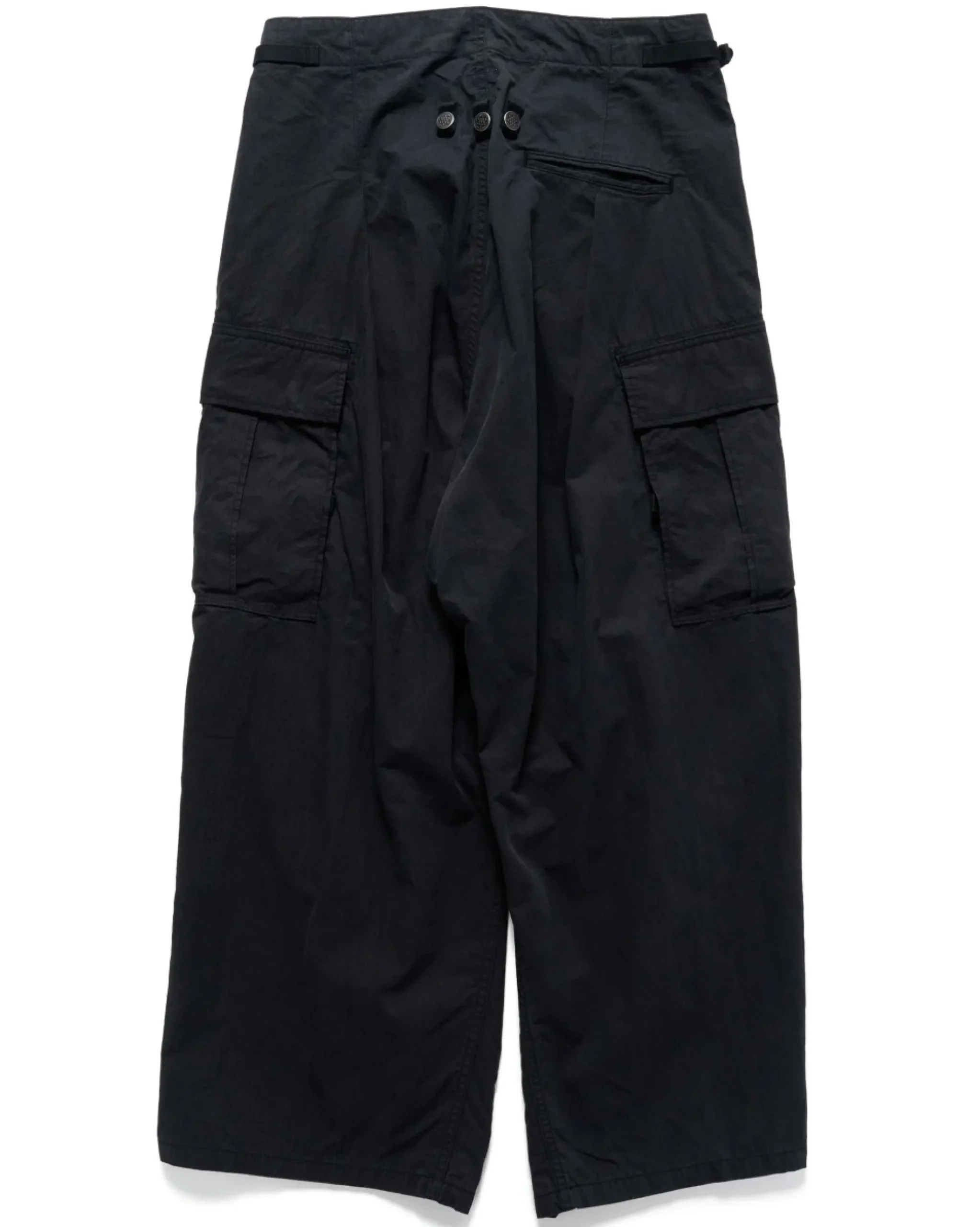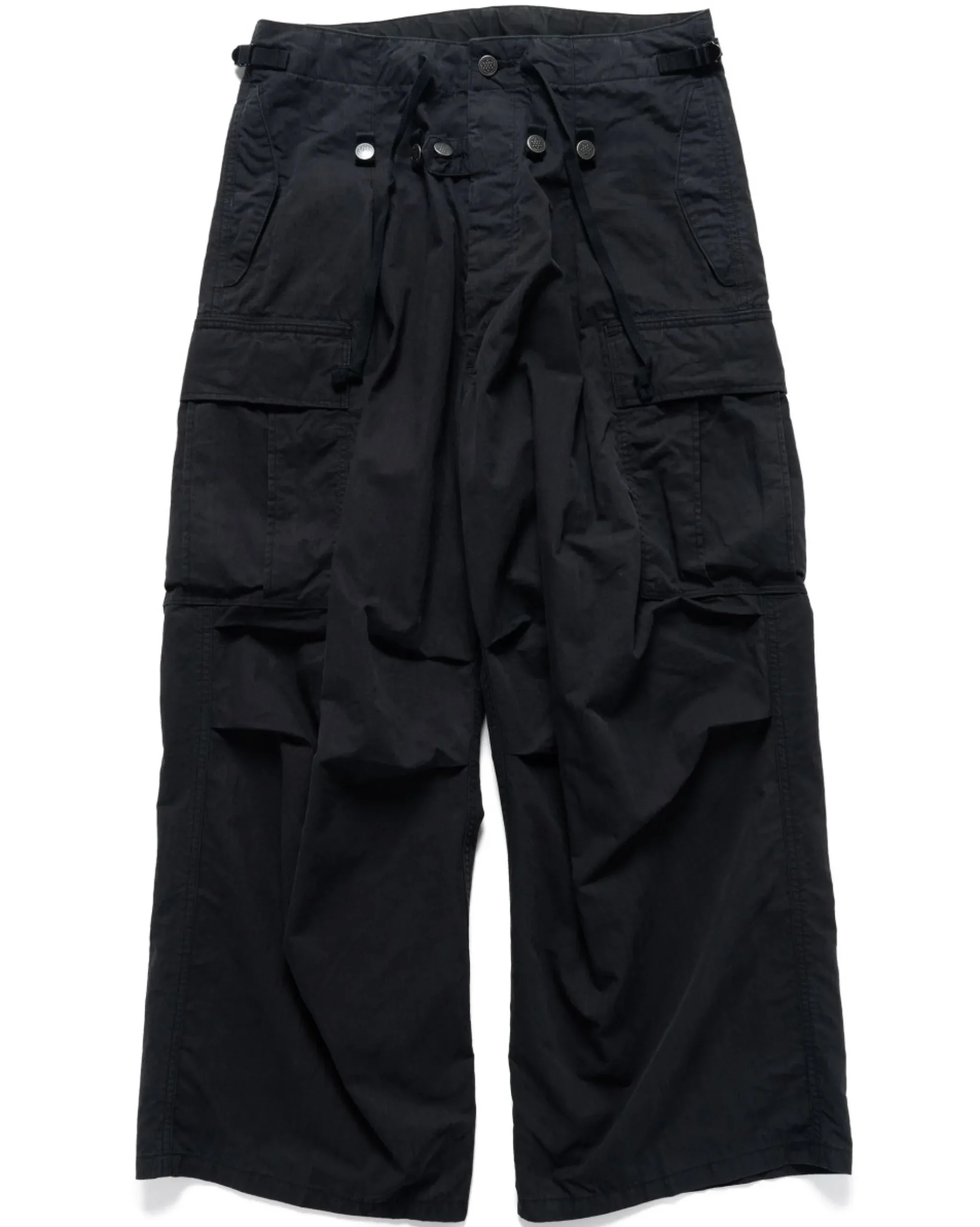 Wide-Legged Cargo Pants In A Cotton Rip-Stop Textile. Drawstring At Waistband With Side Cinching. Suspender Buttons At Front And Rear. Buttoned Fly. Two Inset Flap Pockets With Snap Button Closures. One Rear Inset Pocket. Two Large Cargo Pockets At Each Side With Snap Button Closures. Articulated Knees. Made In Japan.