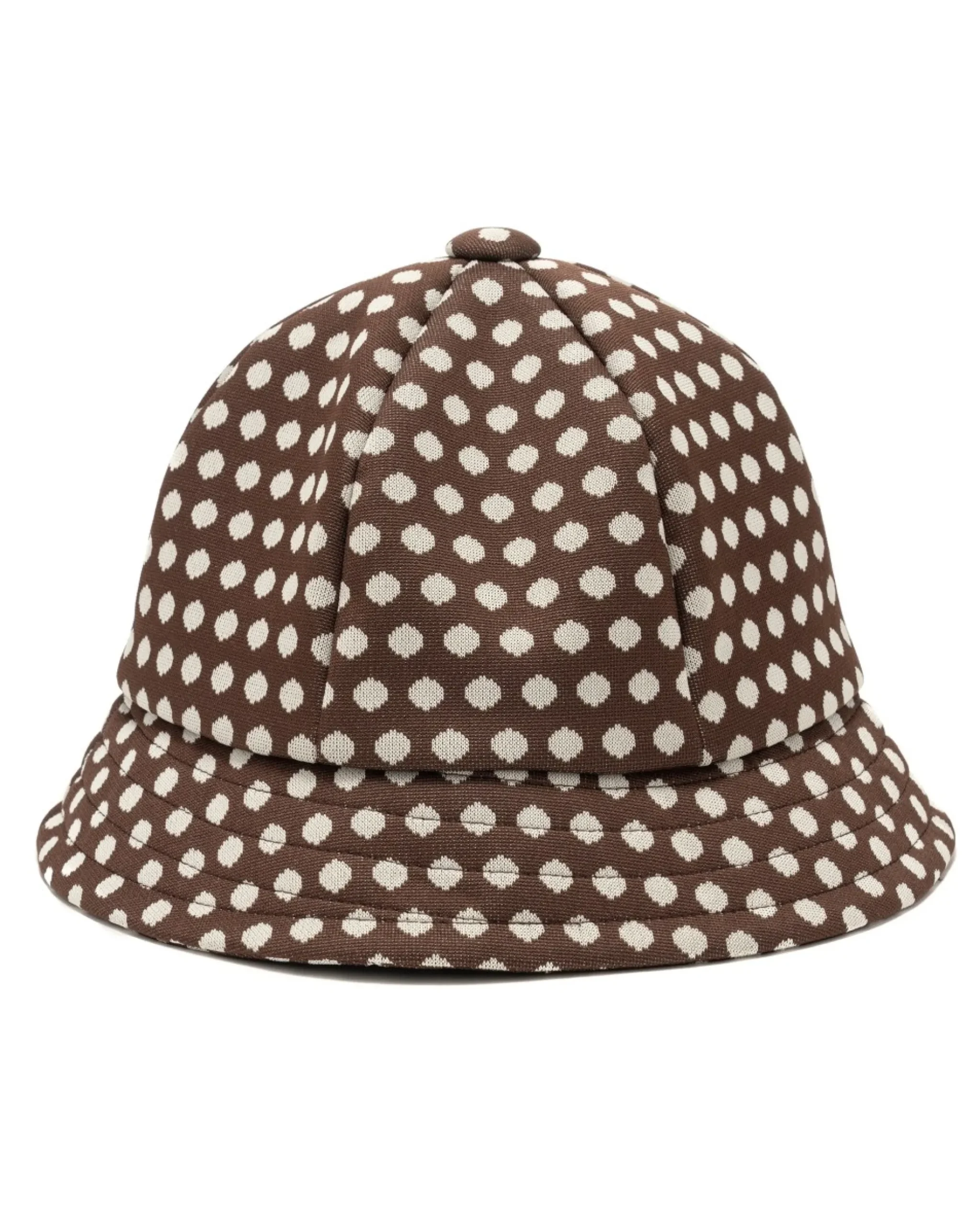 The Polyester Weave Of This Bucket Hat Features A Polka-Dot Pattern Woven Throughout. Its Six-Panelled Construction Is Finished With A Top Button, Short Brim And A Purple Embroidered Butterfly At The Crown. Made In Japan.