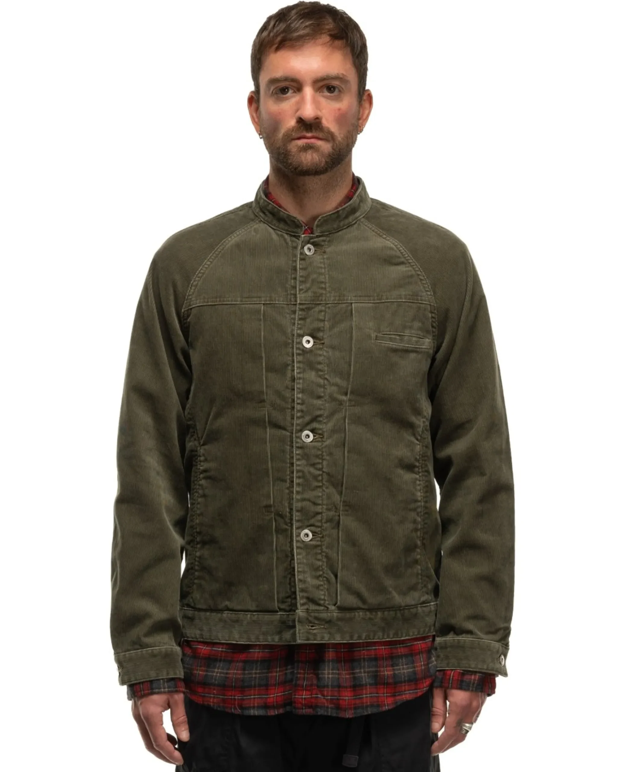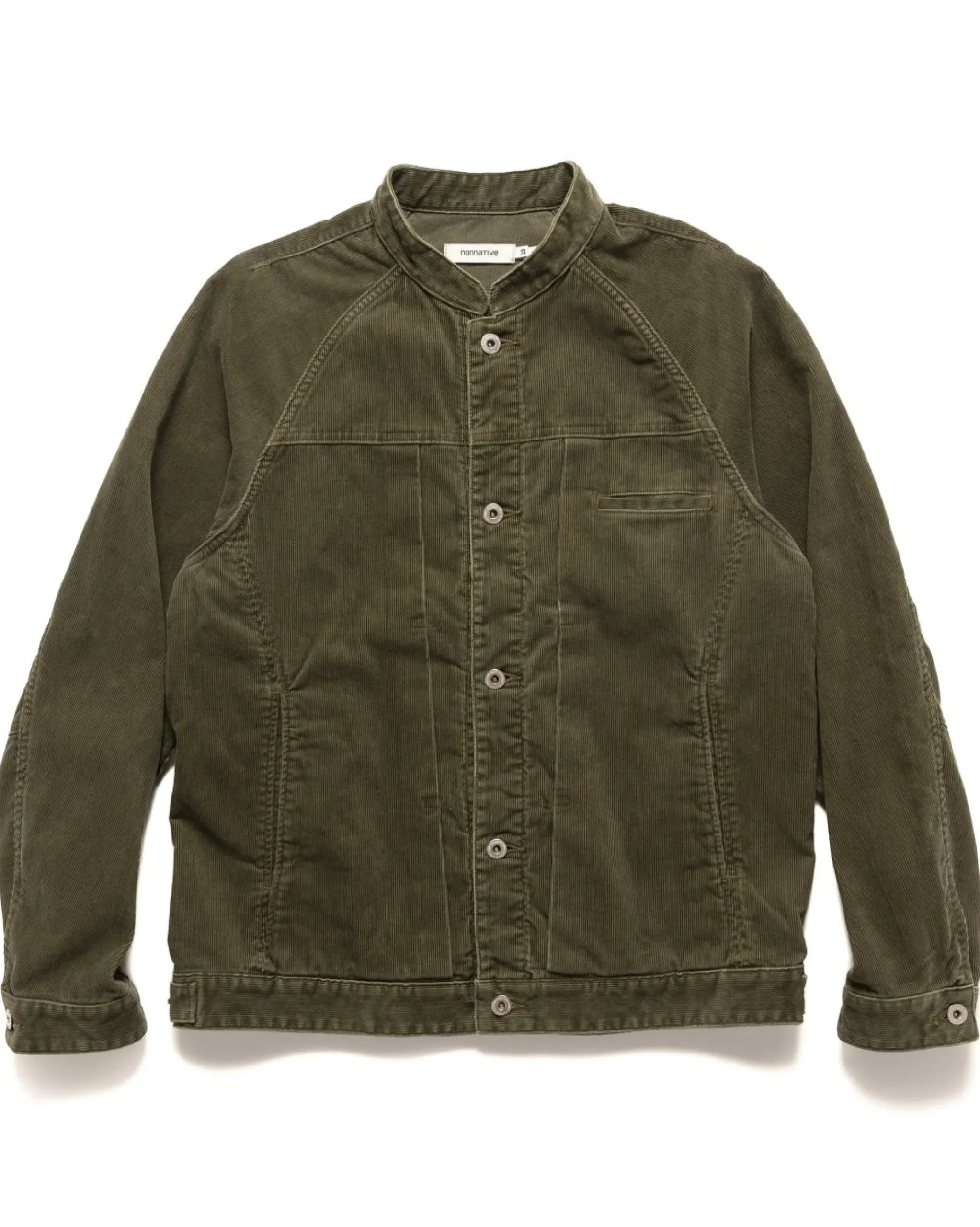 A Seasonal Update To The Familiar Trucker Style Jacket, Built Using A Fine Brushed Cotton Corduroy In A Rich, Earthy Olive Hue With A Gentle Washed Finish. The Overall Design Lines Of The Piece Are Streamlined In A Minimal Form, Allowing The Garment To Feel Less Fussy While Maintaining An Authentic Look And Feel. Raglan Sleeves Add Visual Interest And Create A Unique Fit While Covert Hand And Chest Pockets Add Functionality. Finished With A Slightly Boxy And Cropped Fit, A Short Stand Collar, And Metal Hardware. Made In Japan.