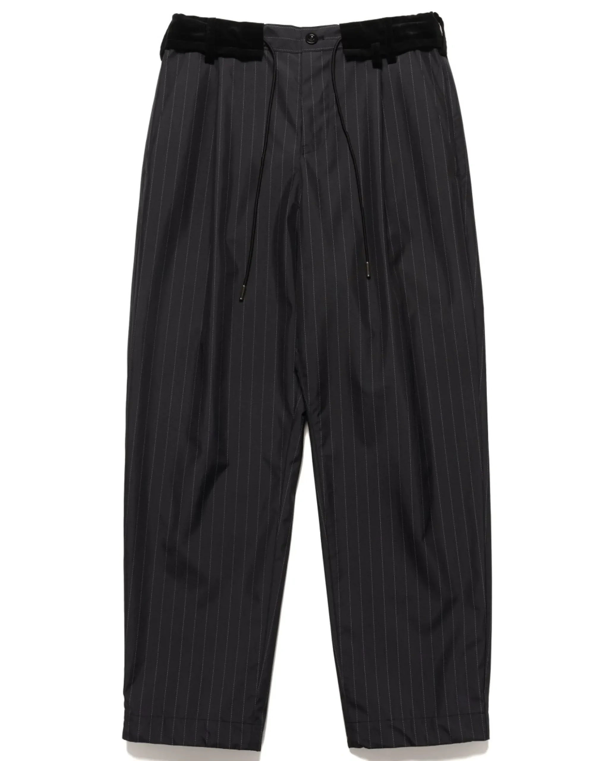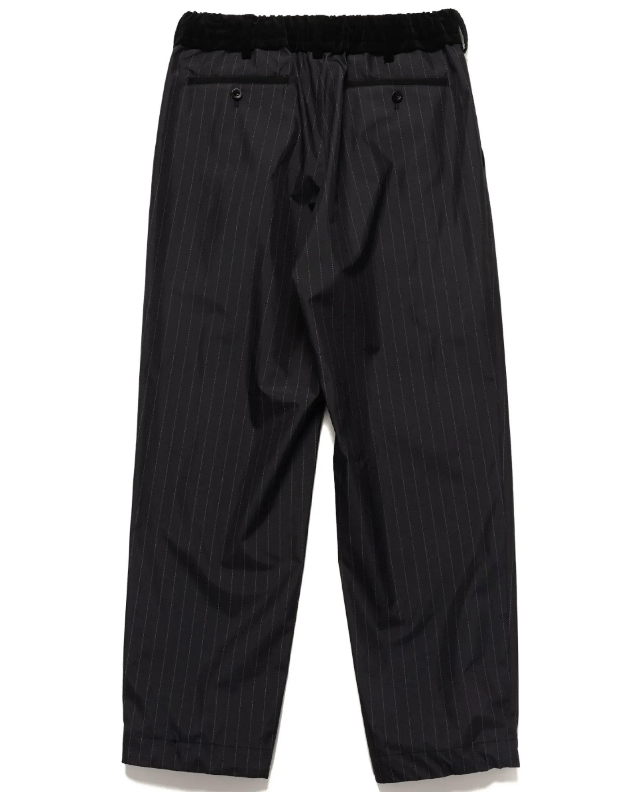 Pinstripe Trousers Reimagined In A Deep Navy Toned Midweight Taffeta Fabric That Has A Structured, Yet Incredibly Smooth Feel. The Pants Capture Sacai’S Essence Of Balancing Luxury And Street Cues With Perfect Flair, Utilizing Adjustable Waist And Cuff Cinches In Tandem With Suiting Style Pockets. Finished In A Relatively Relaxed Fit. Made In Japan
