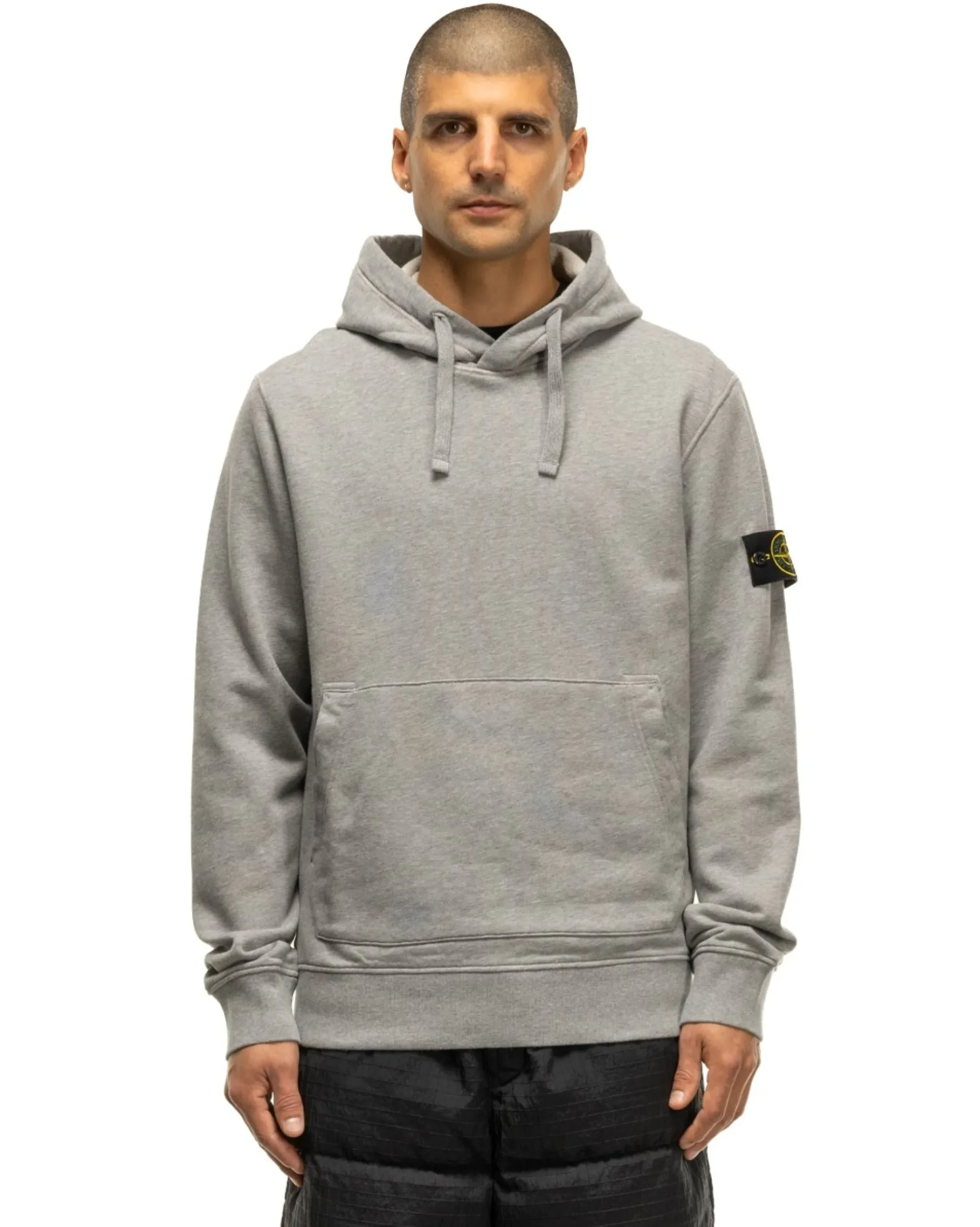 Stone Island Garment Dyed Cotton Fleece Hoodie Melange Grey>Men Sweaters