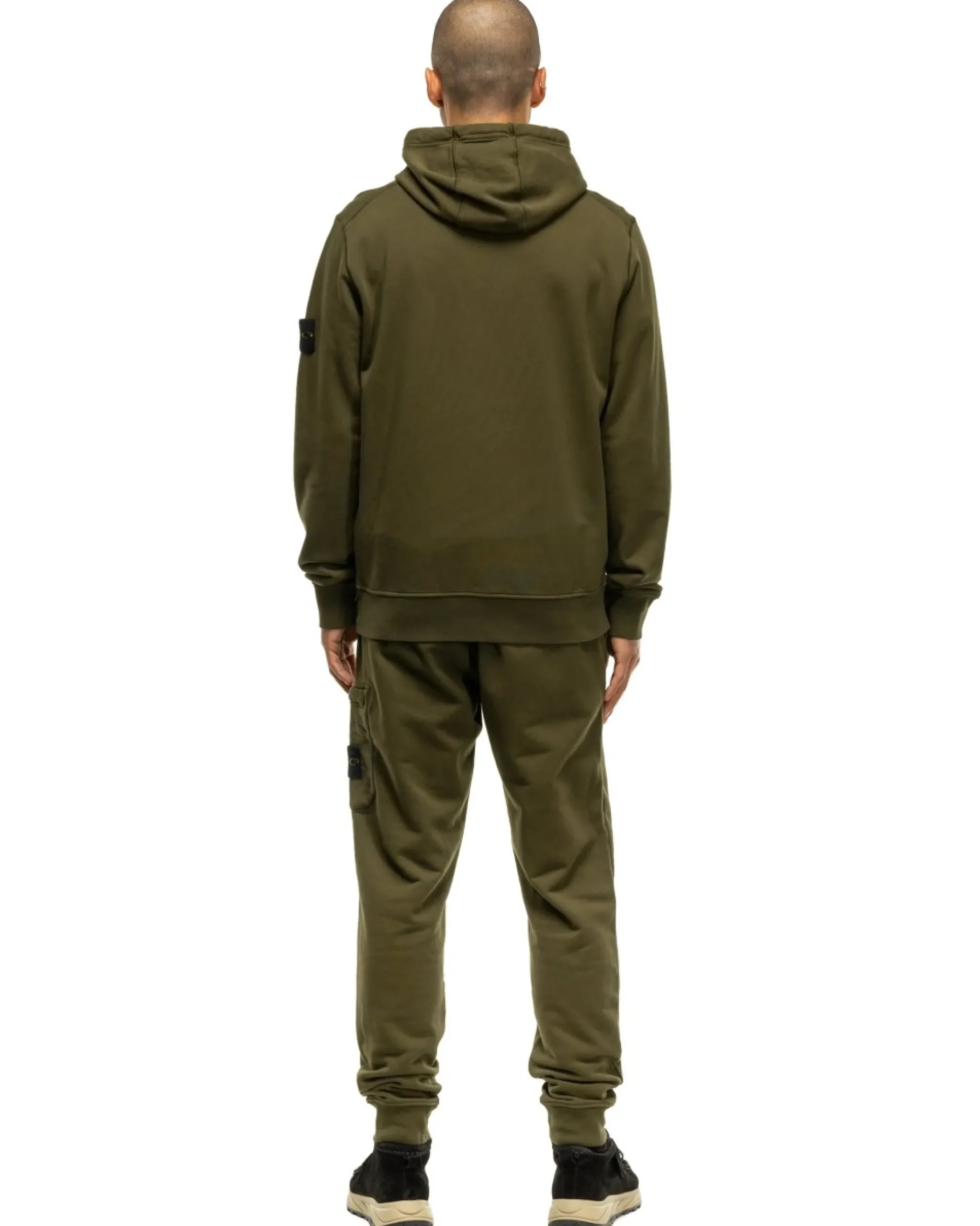Stone Island Garment Dyed Cotton Fleece Hoodie Olive>Men Sweaters