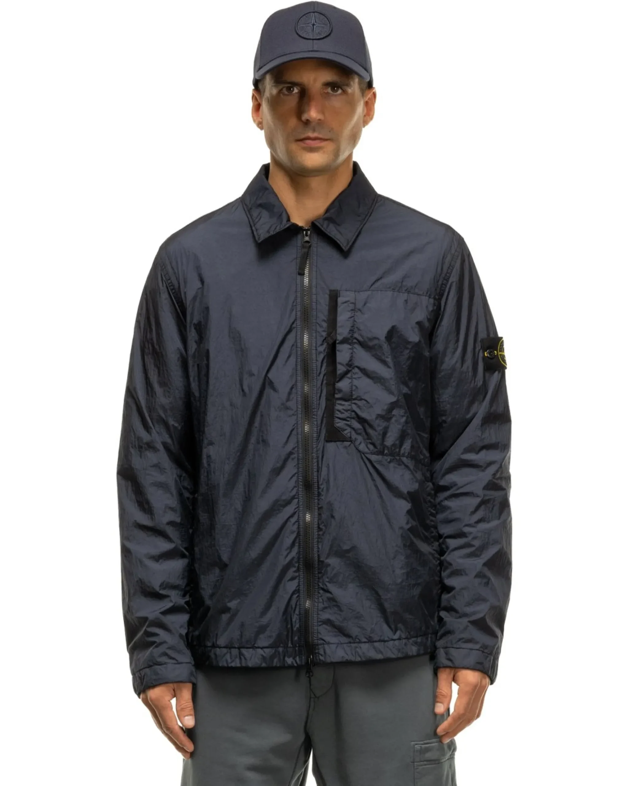 Stone Island Garment Dyed Crinkle Reps Recycled Nylon Overshirt Navy Blue>Men Shirts