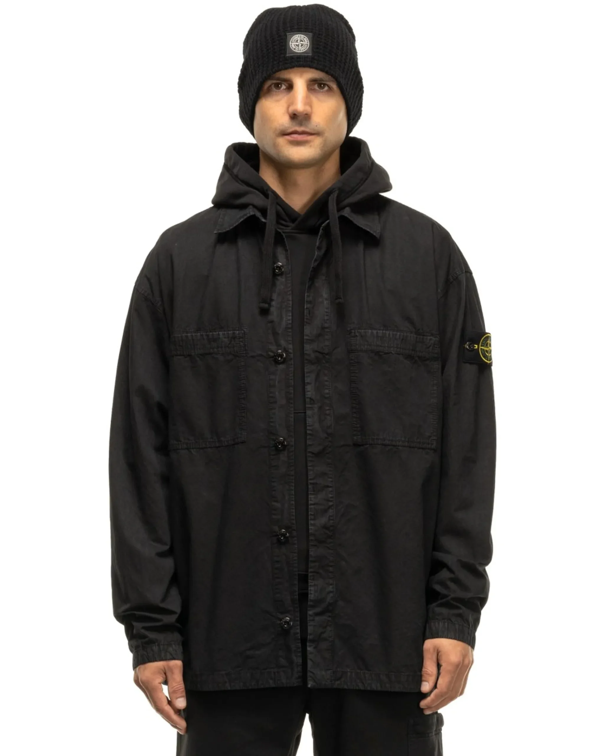 Stone Island Garment Dyed Old Effect Overshirt Black>Men Shirts