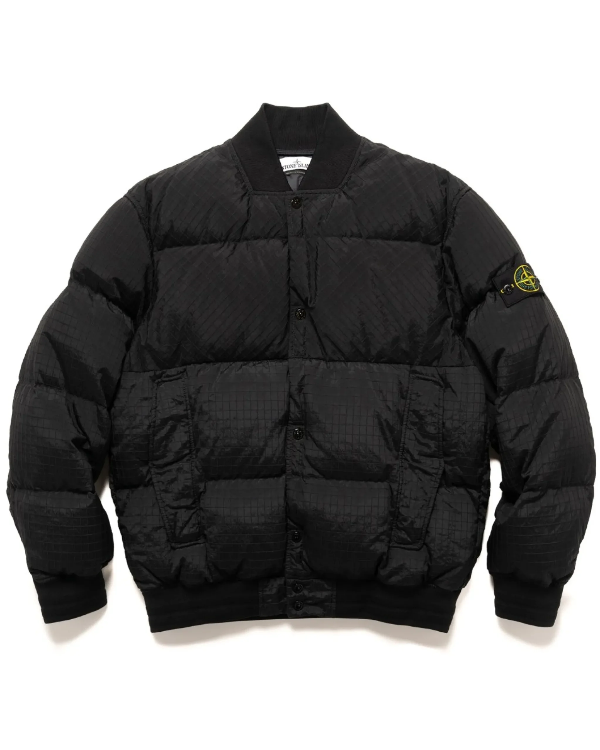 Bomber Style Down Jacket Made In Nylon Metal, A Material With A Metallic And Iridescent Look When Garment Dyed. The Evolution Of This Iconic Stone Island Fabric Sees The Use Of Econyl® Regenerated Yarns – A Post-Consumer Recycled Material. The Overall Fit Is Relaxed And Puffy Due To The Duck Down Fill. A Lightweight Ripstop Nylon Metal Shell Provides Breathability While An Inner Lining Gives It A Smooth Next To Skin Feel.